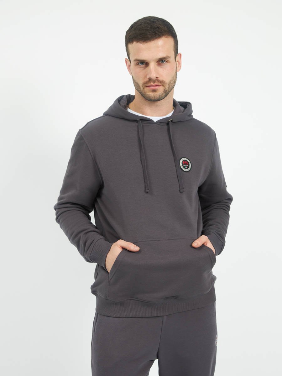 Классическая толстовка "Худи" выполнена из хлопкового полотна с добавлением полиэстера. Мягкая и приятная на ощупь, обладает хорошей гигроскопичностью,  позволяет коже дышать. Модель с капюшоном и длинными рукавами не сковывает движений,  обеспечивая комфорт. Объем капюшона регулируется при помощи шнура. Манжеты рукавов и низ толстовки оснащены эластичными резинками. Спереди толстовка дополнена карманом "кенгуру".