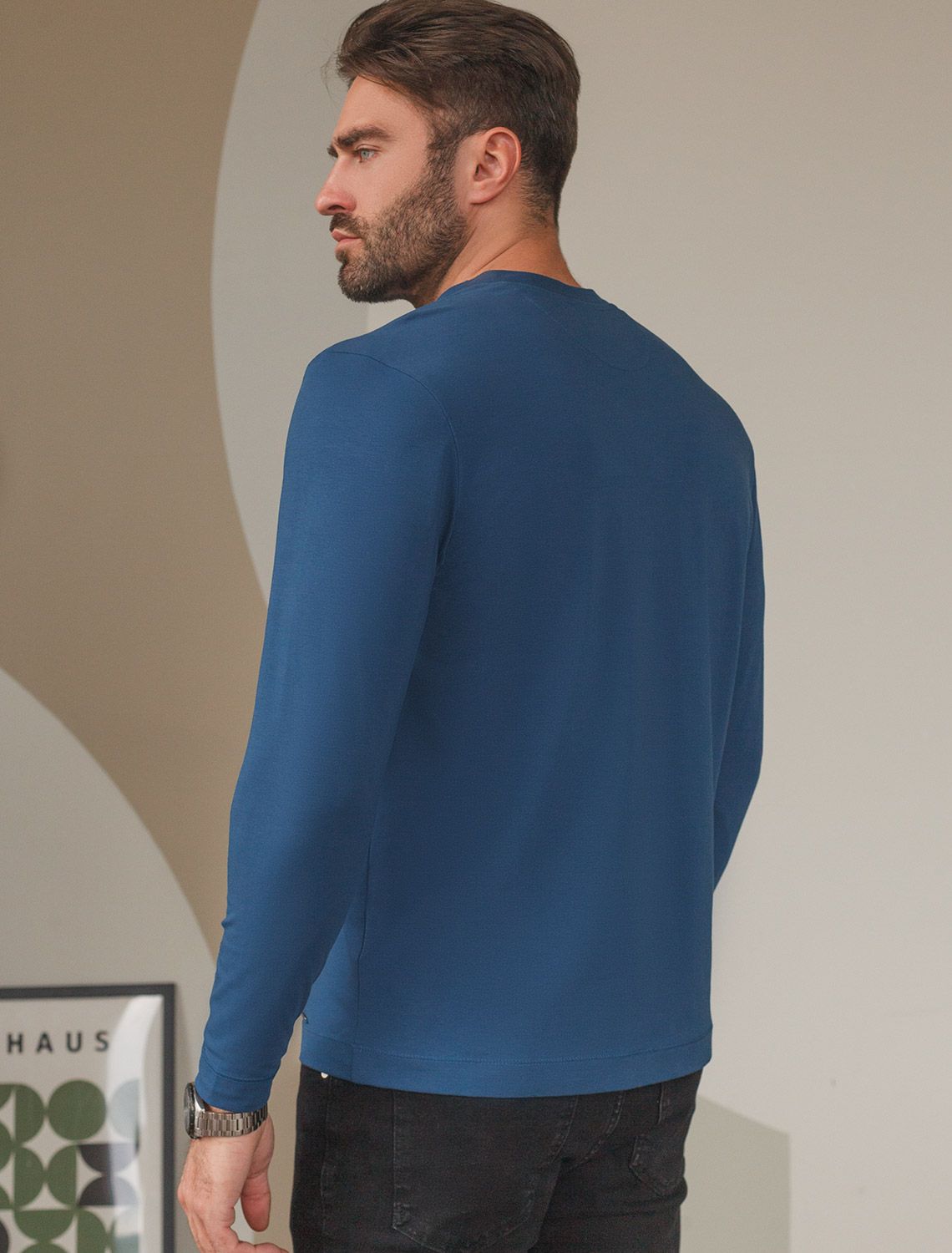 Тонкий лонгслив с круглым воротом на пуговицах из премиального хлопка с эластаном