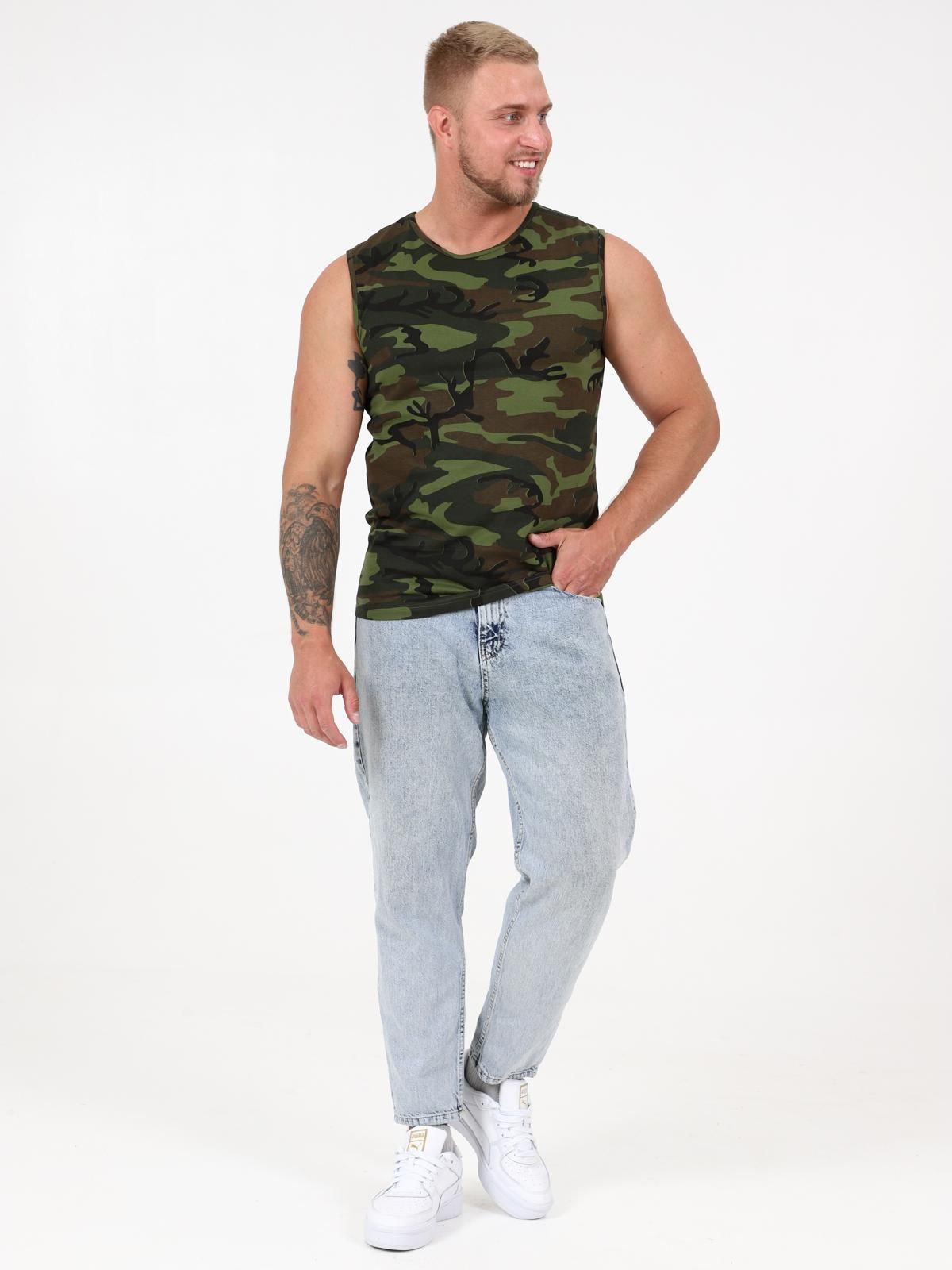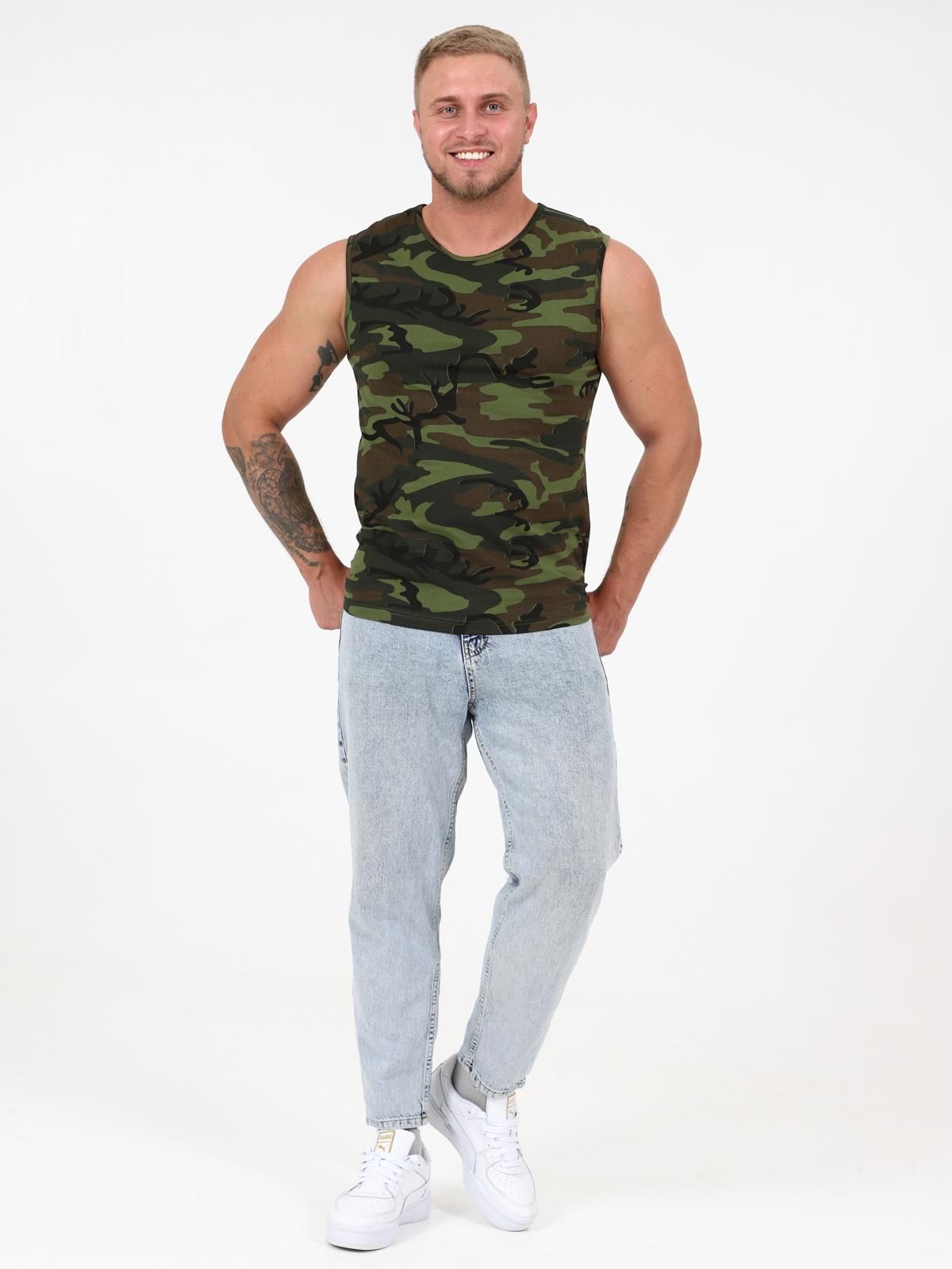 Комфортная повседневная мужская майка, прямого силуэта.  Майка выполнена из хлопкового трикотажа. Горловина округлой формы. Отличный вариант для повседневного гардероба.