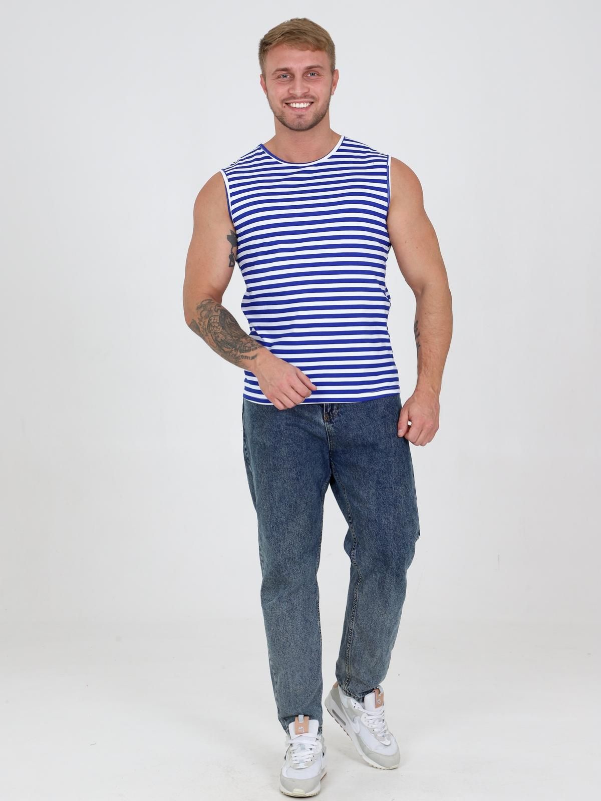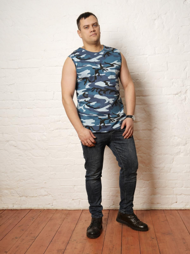 Комфортная повседневная мужская майка, прямого силуэта.  Майка выполнена из хлопкового трикотажа. Горловина округлой формы. Отличный вариант для повседневного гардероба.