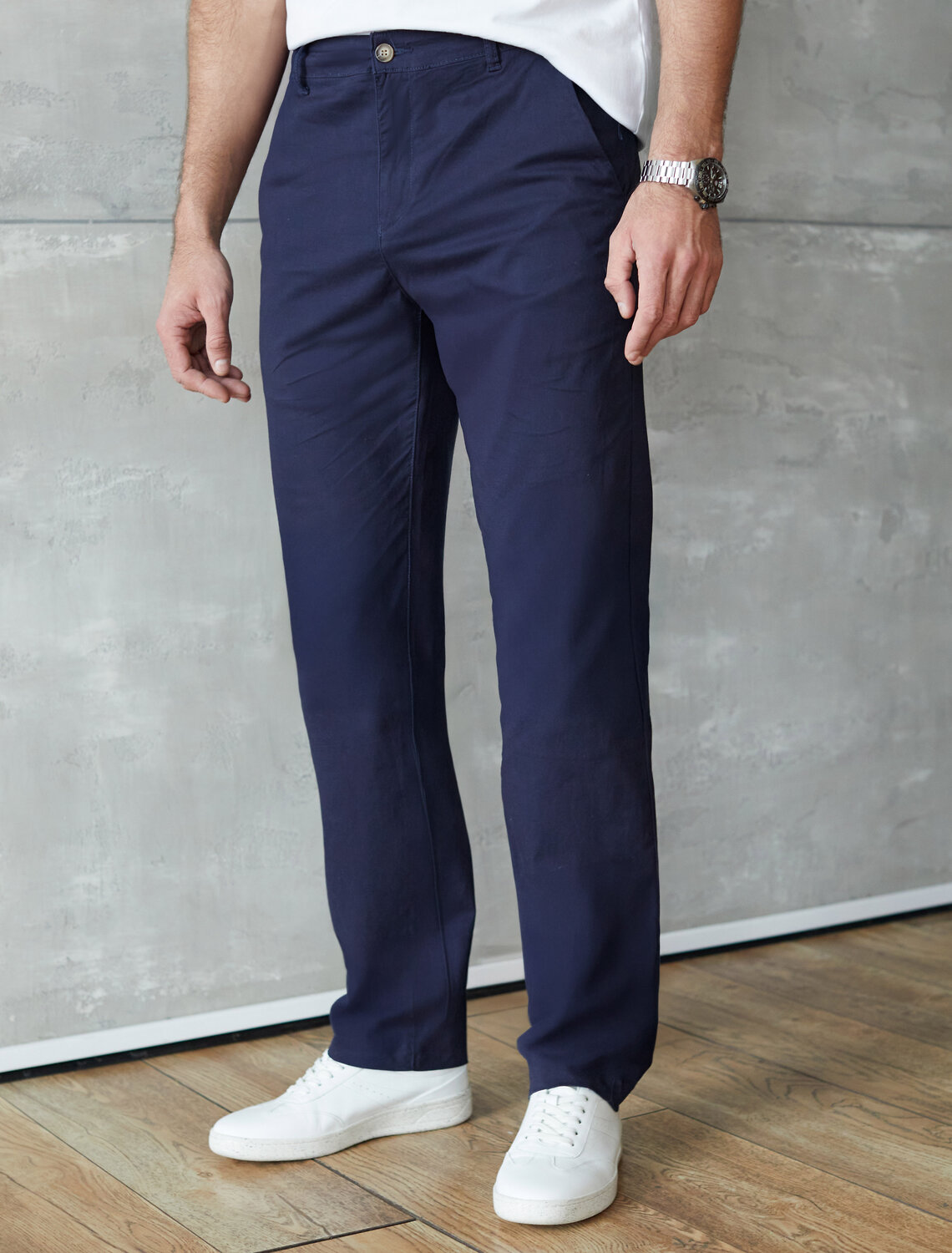 Брюки выполнены из хлопкового твилла. Слегка зауженные внизу чиносы дополнены классическими карманами и шлевками на поясе. Эластичное изделие хорошо держит форму, обладает высокой воздухопроницаемостью и прочностью. Сохраняет форму и цвет в течении долгого времени, не сковывает движений. Изделие дополнено фирменным патчем.