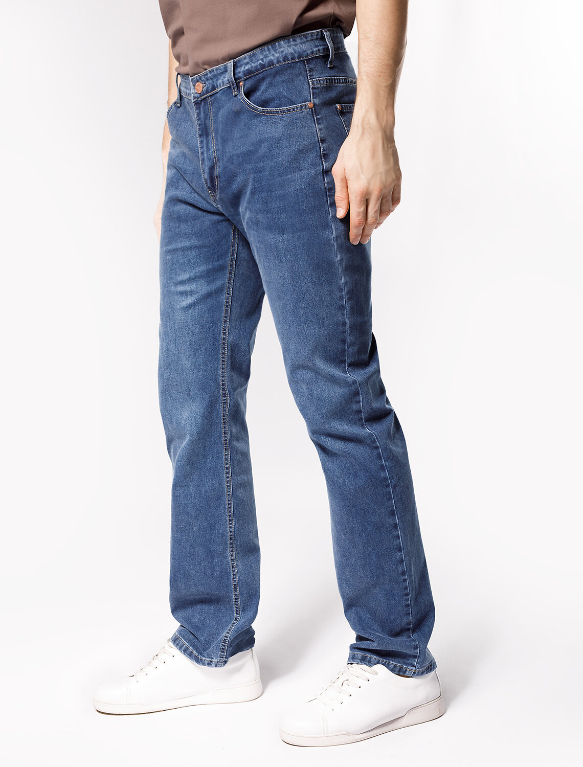 Джинсы с классической посадкой выполнены из эластичного денима, комфортно садятся по фигуре, не сковывая движений. Ткань хорошо держит форму и не вытягиваясь со временем. Изделие сохранит свой безупречный вид надолго, даже при активной носке. Подходит для любой фигуры.