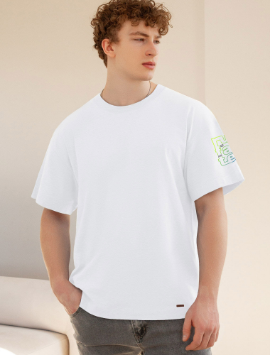 Перевод принта: Live your life by a compass, not a clock, explore, follow your way - живи по компасу, а не по часам, изучай, следуй своему пути. Футболка свободного кроя выполнена из премиального хлопка. Авторский принт нанесен красками с устойчивым покрытием. Благодаря эластану, носить изделие очень комфортно, и оно сохранит свой безупречный вид в течение долгого времени. На рукаве нашивка из эко-кожи с логотипом бренда.
