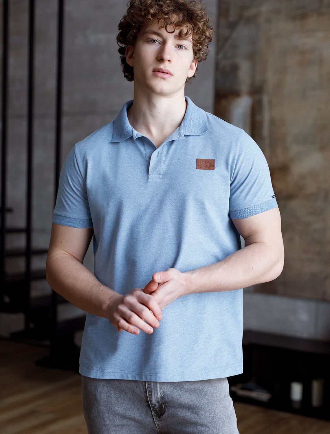 Поло выполнено из трикотажа пике с эффектом меланж. Модель с отложным фактурным воротником дополнена нашивкой из эко-кожи c надписью Аутентичный клуб VILATTE. Наличие эластана в составе изделия способствует формоустойчивости и меньшей сминаемости. На рукаве металлический логотип бренда.