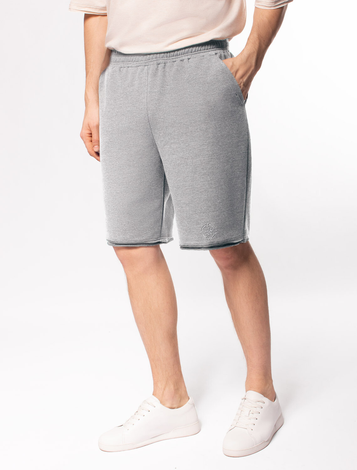 Шорты в оттенке серый меланж выполнены из тонкого футера. Модель прямого кроя дополнена трендовыми открытыми срезами и лаконичной вышивкой роза ветров. Эластичный пояс на резинке с внутренним шнуром комфортно фиксирует изделие не сковывая движений. По бокам удобные карманы. Наличие ПЭ в составе изделия способствует формоустойчивости. Фирменный металлический логотип бренда и нашивка из эко-кожи.
