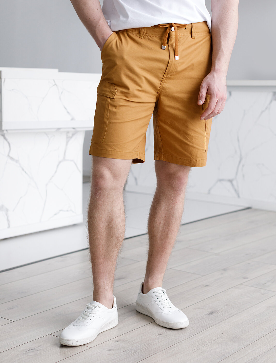 Шорты с эластичным поясом и регулируемым шнурком выполнены из хлопкового твилла. Модель с крупными накладными карманами-карго дополнена фирменной нашивкой из эко-кожи. Эластичное изделие хорошо держит форму, обладает высокой воздухопроницаемостью и прочностью. Сохраняет форму и цвет в течении долгого времени, не сковывает движений.