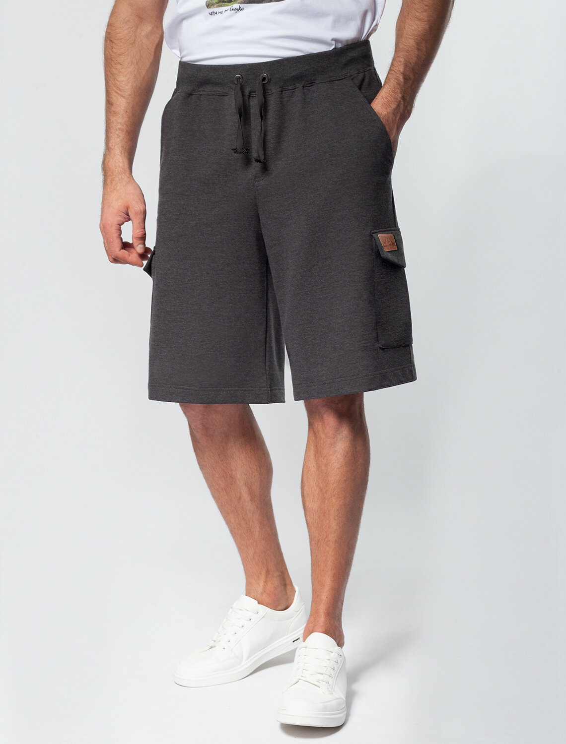 Шорты выполнены из легкого футера с эластаном. Мягкий материал хорошо пропускает воздух и поддерживает оптимальный микроклимат даже в жаркое время года, поэтому в изделии будет комфортно в течении всего дня. На кармане нашивка логотип бренда из эко-кожи.