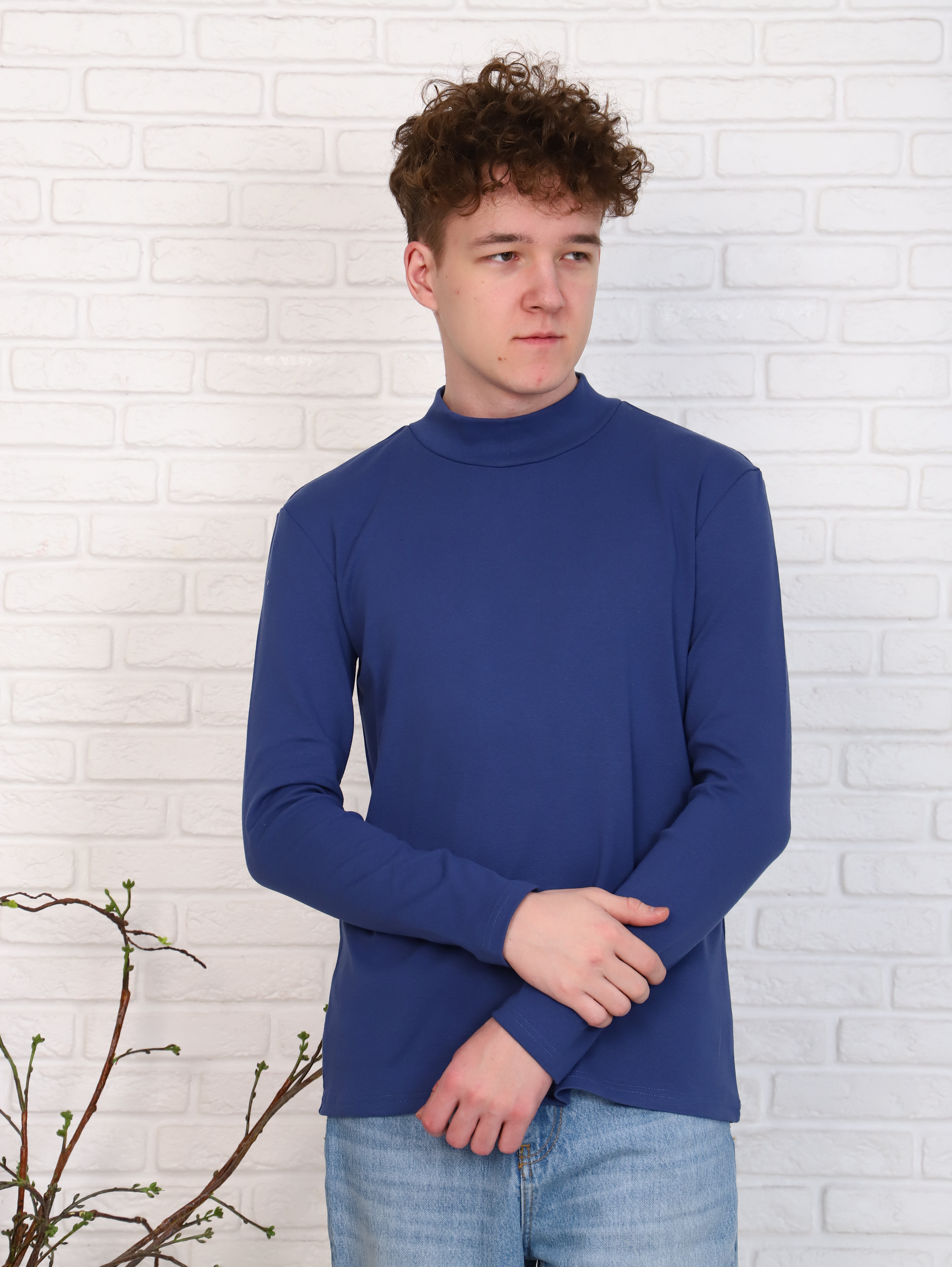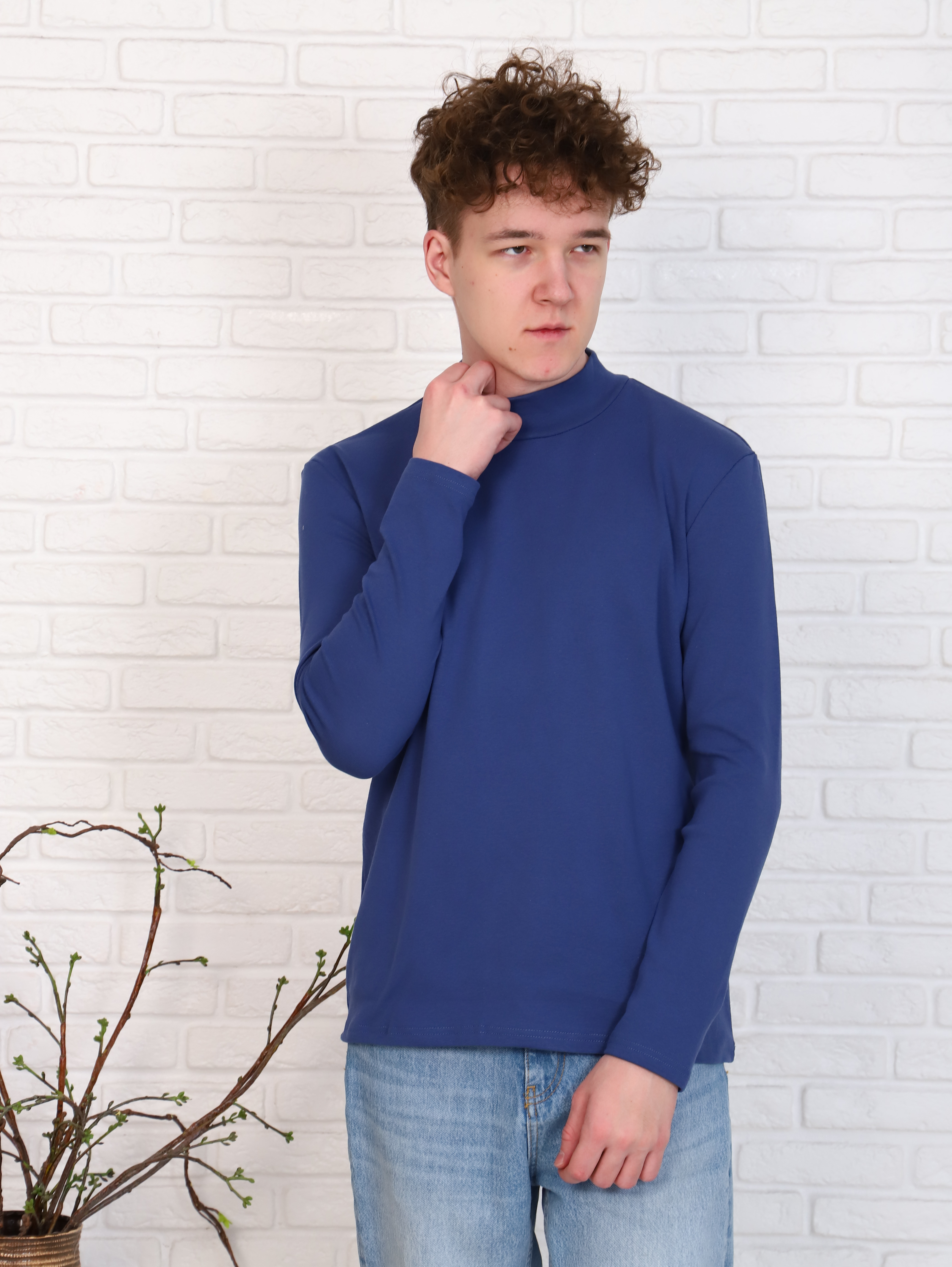 Отличная недорогая мужская водолазка выполнена из хлопкового полотна – рибана. Модель классическая, воротник-стойка.