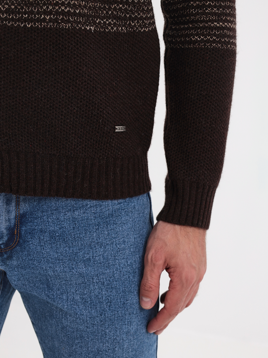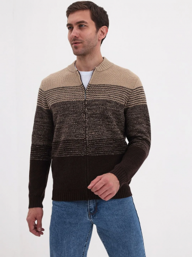Цвет: Коричневый Рисунок: Трикота..показатьж с дизайном Состав: 80% шерсть мериноса 20% акрил Модель: Классическая Ворот: Жакет на молнииж с дизайном