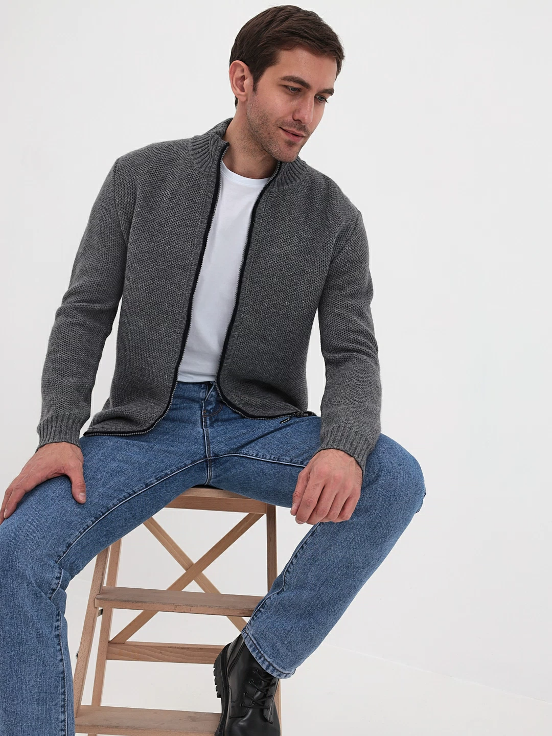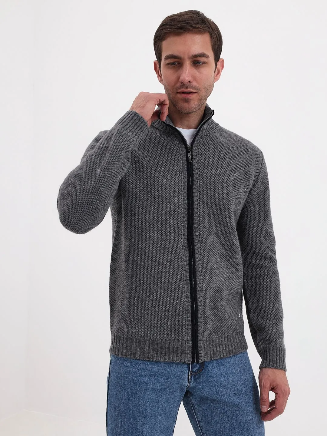 Цвет: Серый Рисунок: Трикотаж с д..показатьизайном Состав: 80% шерсть мериноса 20% акрил Модель: Классическая Ворот: Жакет на молнииизайном