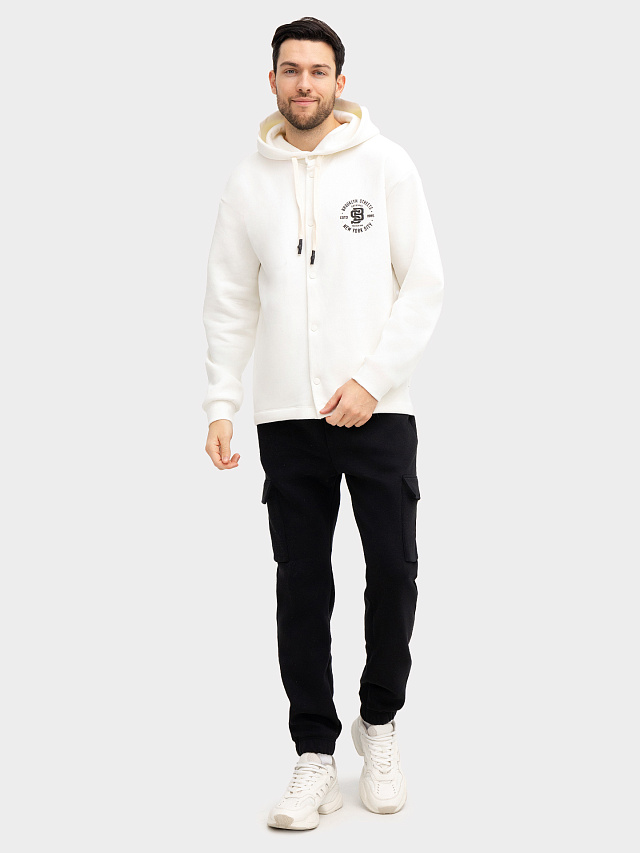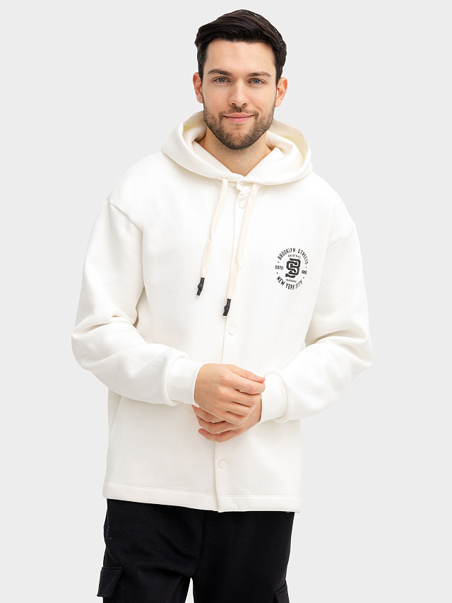 Стильная и уютная толстовка мужская из трикотажного полотна футера. Модель прямая свободная, оверсайз. Рукава втачные, длинные, с отрезными манжетами из рибаны. Плечо спущено. Горловина округлой формы с капюшоном. Капюшон цельнокроеный с подкладкой. Спереди выполнена центральная застежка на кнопки, верхняя кнопка располагается на капюшоне. В боковых швах есть функциональные карманы. Широкий размерный ряд. Отлично сядет на любую мужскую фигуру. Комфортная и невероятно практичная мужская толстовка для активного отдыха и повседневных дел. Рекомендуем!