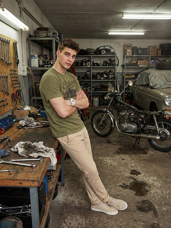 Мужская футболка F5, Regular fit (полуприлегающий силуэт), круглый вырез горловины, короткий рукав. Выполнена из классического трикотажного полотна.