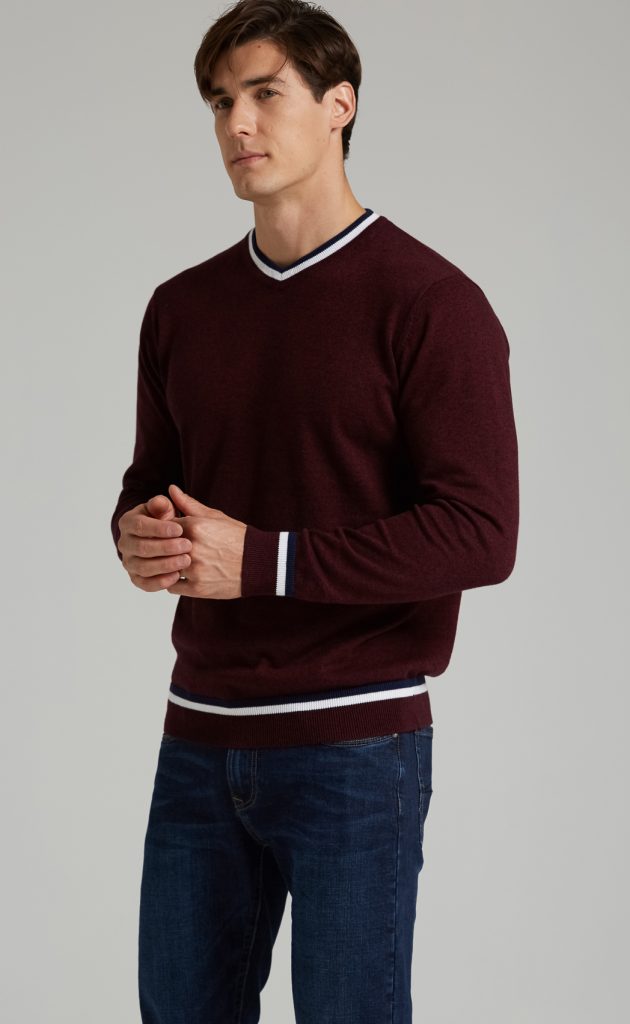 Новинка от Fine Joyce – пуловер из хлопка с контрастной V-образной горловиной, резинкой по низу и отделкой рукавов. Мягкая выделка. Благодаря удобству и универсальности этот джемпер найдет свое место в гардеробе любого мужчины. Большие размеры.