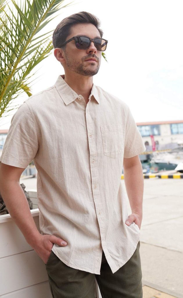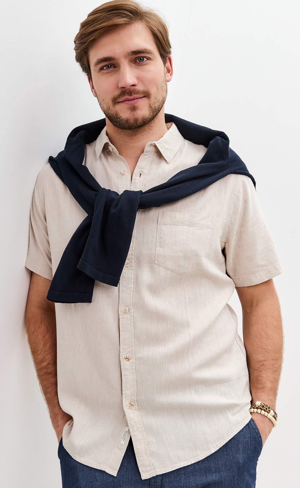 Наименование для сайта: Рубашка к/р лен F111-0451 beige
