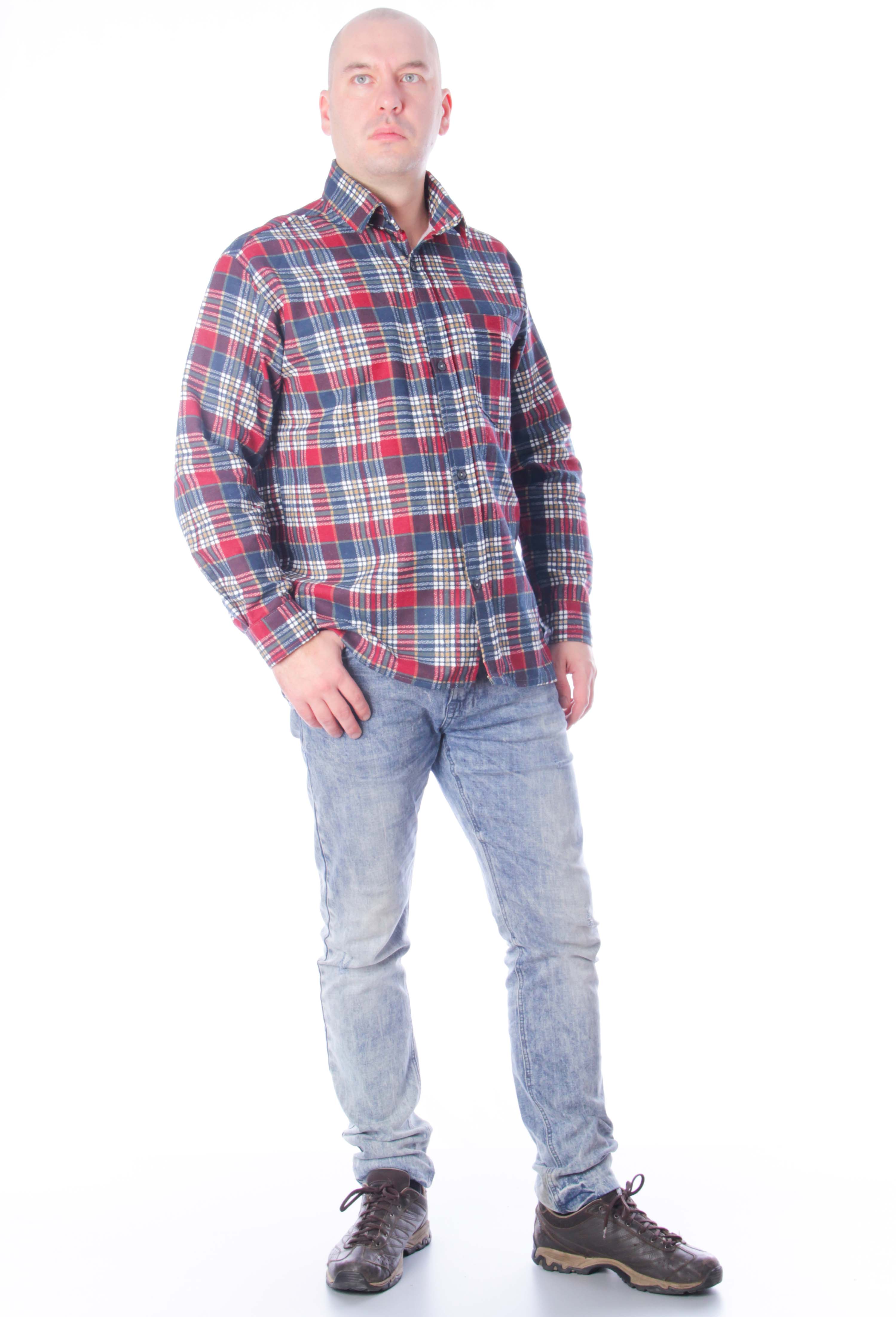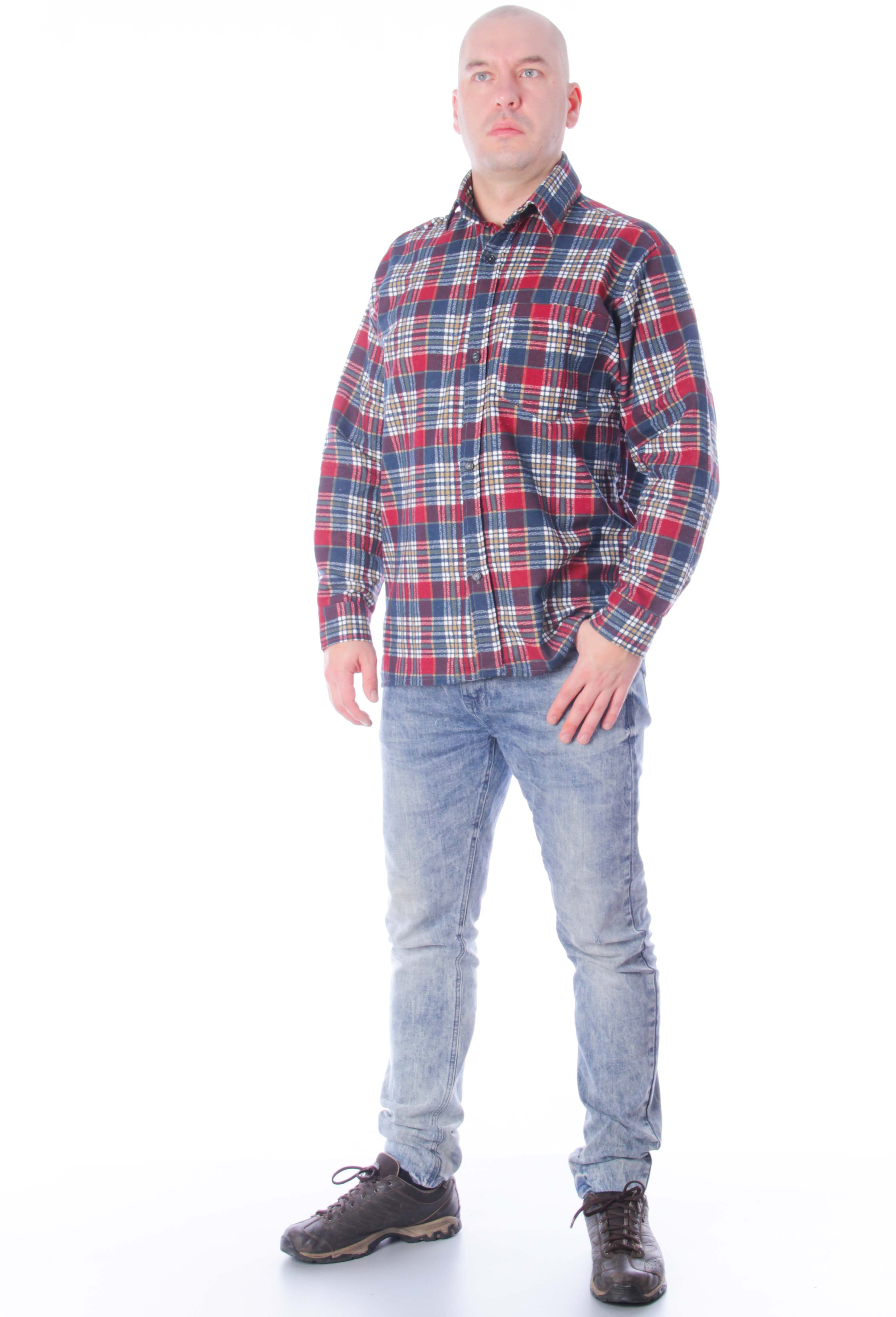 Фланелевая клетчатая рубашка из ткани производства Ярцевского комбината. Рукава на манжетах, один нагрудный карман.