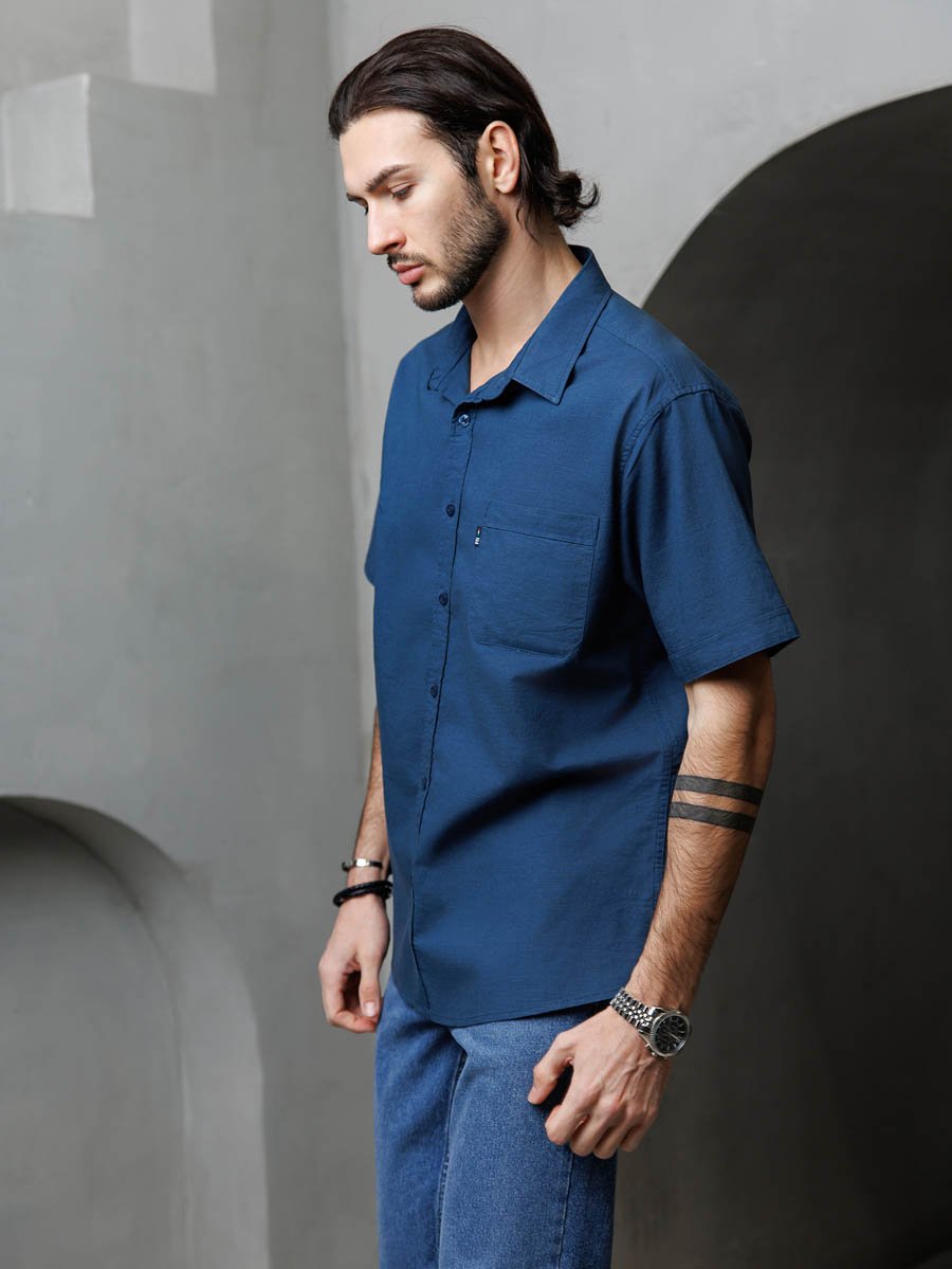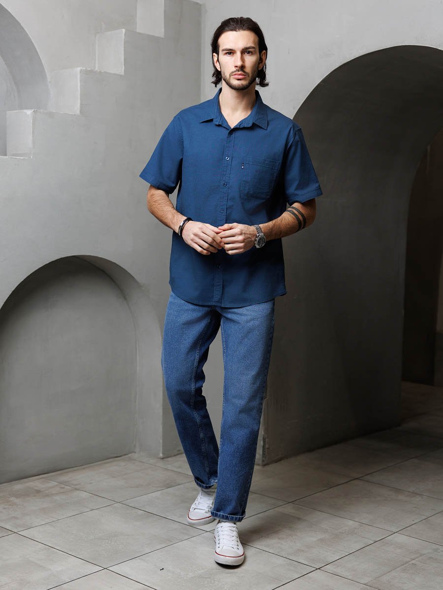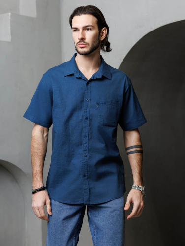 Рубашка изготовлена из высококачественной смесовой ткани (лен с хлопком), мягкая и приятная на ощупь.