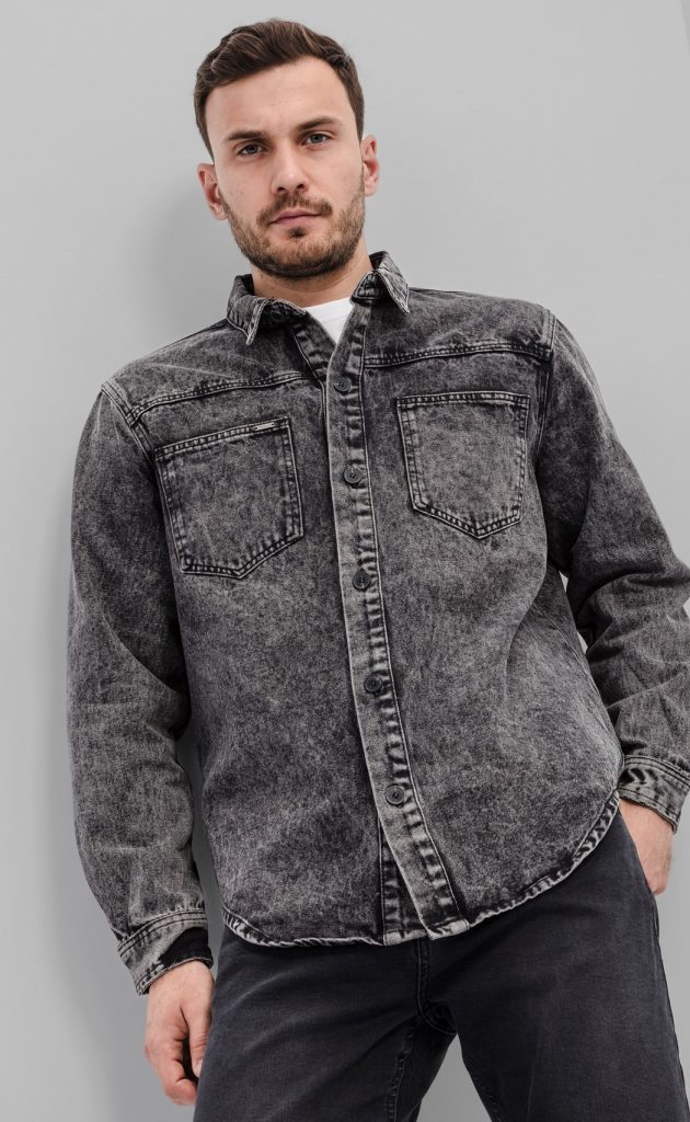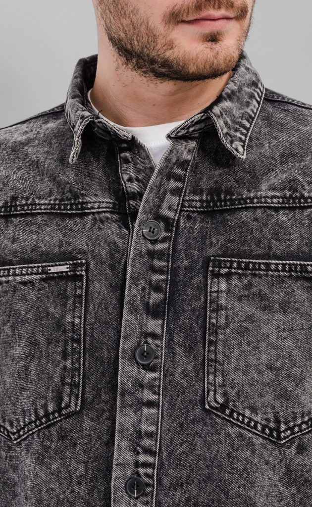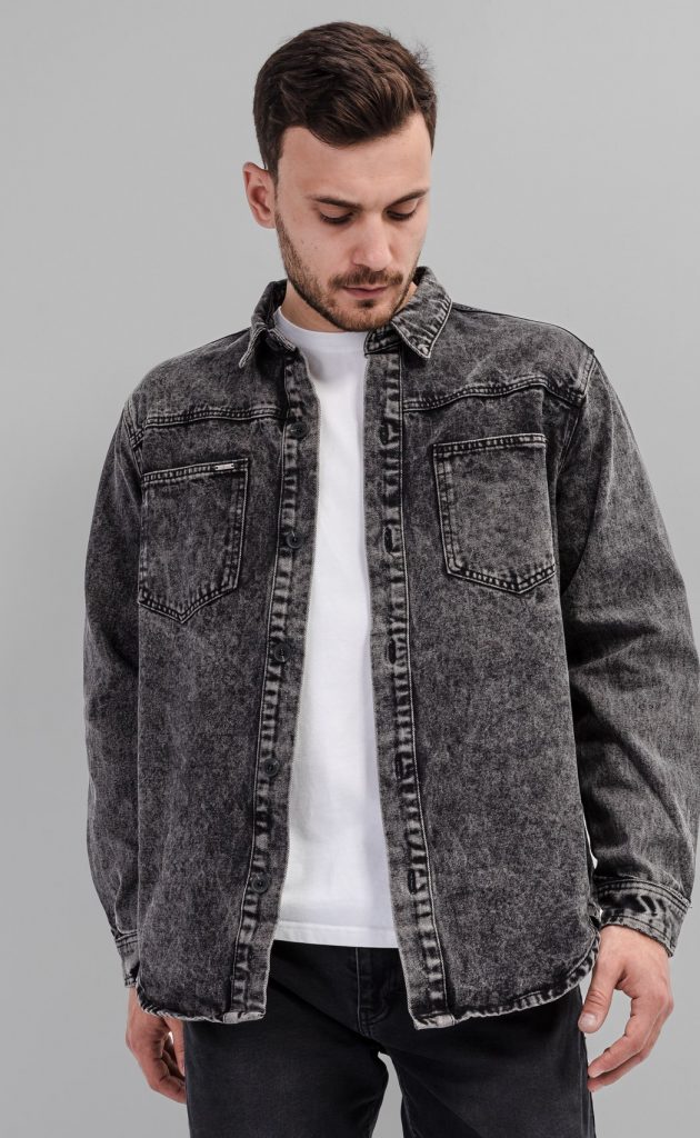 Наименование для сайта: Рубашка мужская джинсовая с длинным рукавом оверсайз P311-1220-3 чёрная