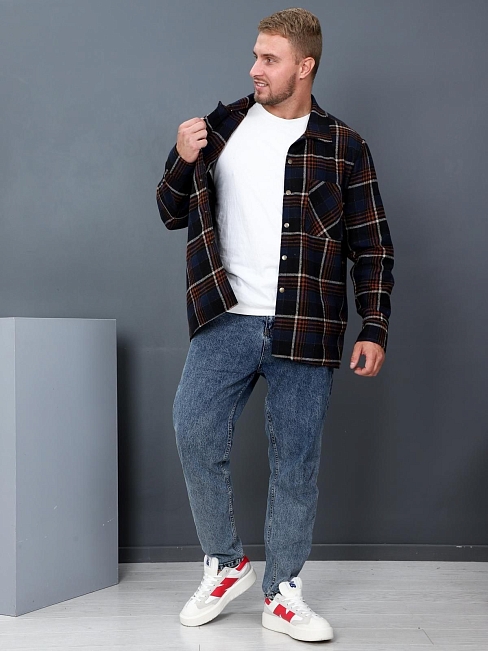 Рубашка мужская Никос - шерстяная в клетку. Рубашка имеет свободный крой, накладные карманы на полочках, длинные рукава и застегивается на пуговицы. Воротник классический, с отложными краями.