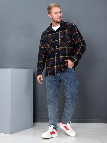 Рубашка мужская Никос - шерстяная в клетку. Рубашка имеет свободный крой, накладные карманы на полочках, длинные рукава и застегивается на пуговицы. Воротник классический, с отложными краями.