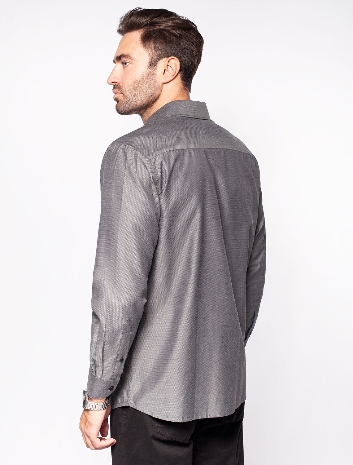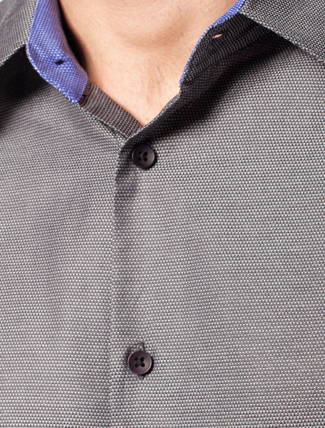 Рубашка выполнена из премиального хлопка с добавлением ПЭ. Рельефный материал напоминает фактуру трикотажа пике. Изделие дополнено контрастными внутренними элементами на воротнике. Комфортно сидит по фигуре, не ограничивая движений. Подходит как для строгих мероприятий, так и для повседневных образов с джинсами. темно-серый-синий