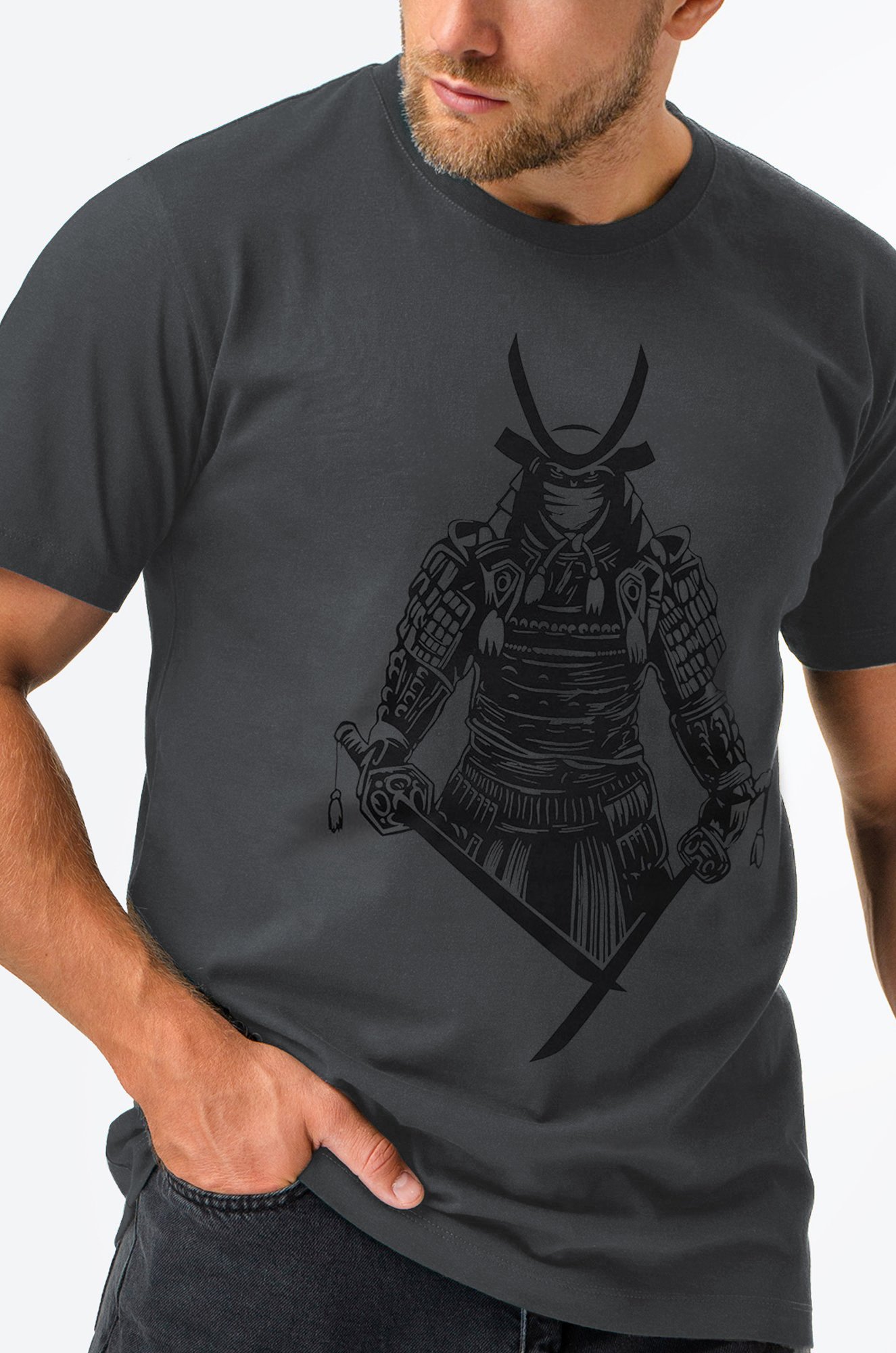 Принт с самураем символизирует решительность, внутреннюю стойкость и уважение к традициям. Хлопковая футболка с принтом выполнена из легкой трикотажной ткани кулирная гладь. Сочетание мягкости и прочности позволяет ей сохранять форму даже после многократных стирок.