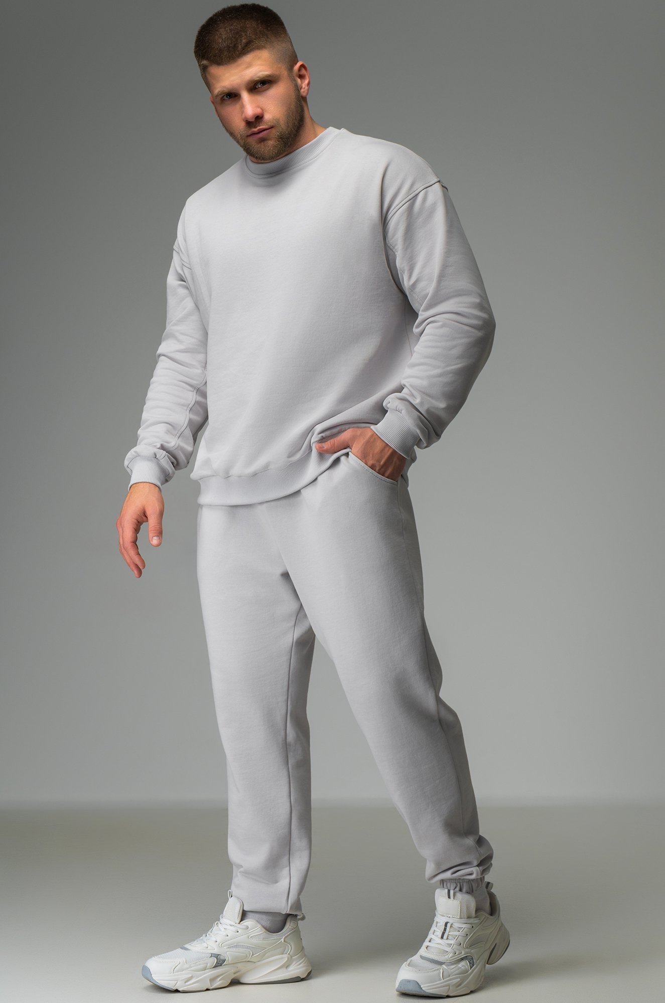 Однотонный костюм oversize для мужчин выполнен из 100% хлопка. Футер известен своей мягкостью и воздухопроницаемостью, даря легкость и уют в прохладные дни. Трикотаж обеспечивает идеальную посадку и несомненный комфорт, что делает его незаменимым в прохладные осенние и зимние дни.Лаконичный дизайн позволяет сочетать модель со многими вещами из твоего гардероба.