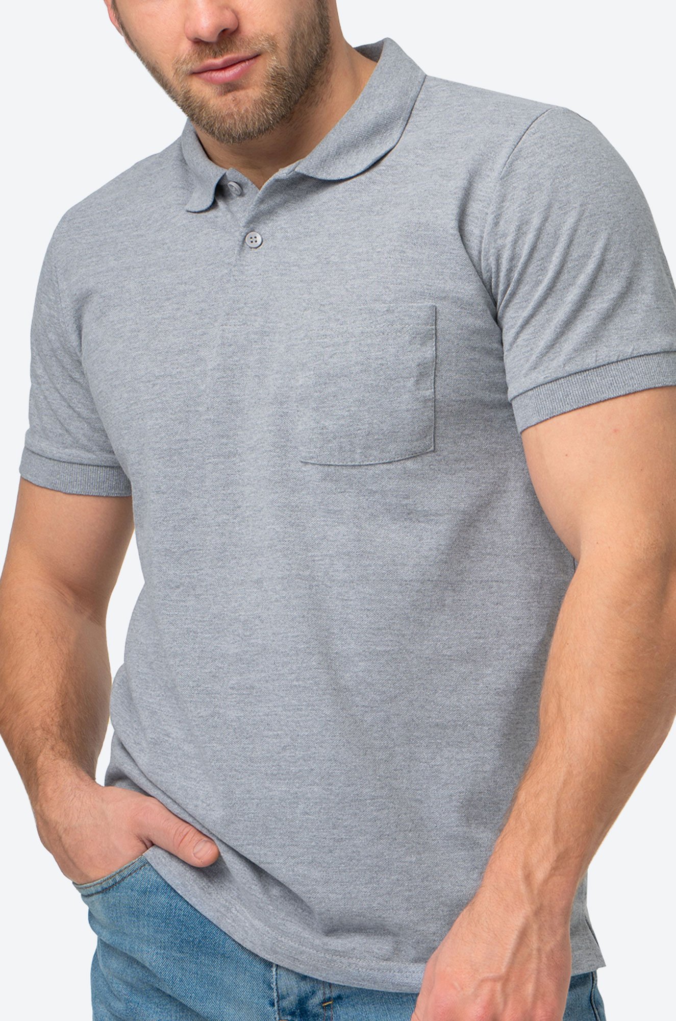 Светло-серая футболка поло — лаконичны..показатьй фаворит мужского гардероба, который всегда к месту. Идеальный баланс между комфортом и стильным минимализмом для повседневных образов.