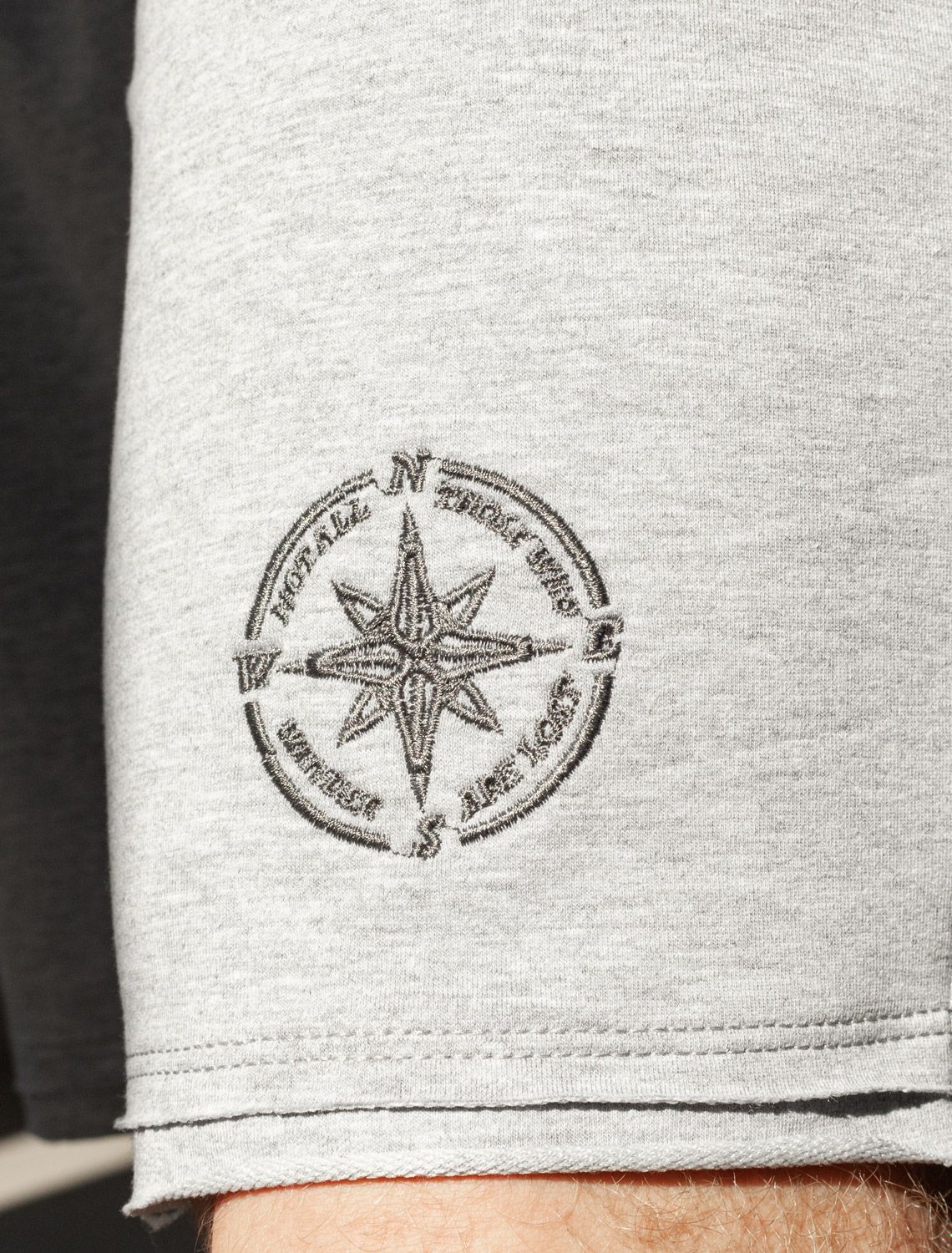 Перевод принта: not all those who wander are lost - не все, кто бродят по миру, потеряли свой путь. Шорты в оттенке серый меланж выполнены из тонкого футера. Модель прямого кроя дополнена трендовыми открытыми срезами и лаконичной вышивкой роза ветров. Эластичный пояс на резинке с внутренним шнуром комфортно фиксирует изделие не сковывая движений. По бокам удобные карманы. Наличие ПЭ в составе изделия способствует формоустойчивости. Фирменный металлический логотип бренда и нашивка из эко-кожи.