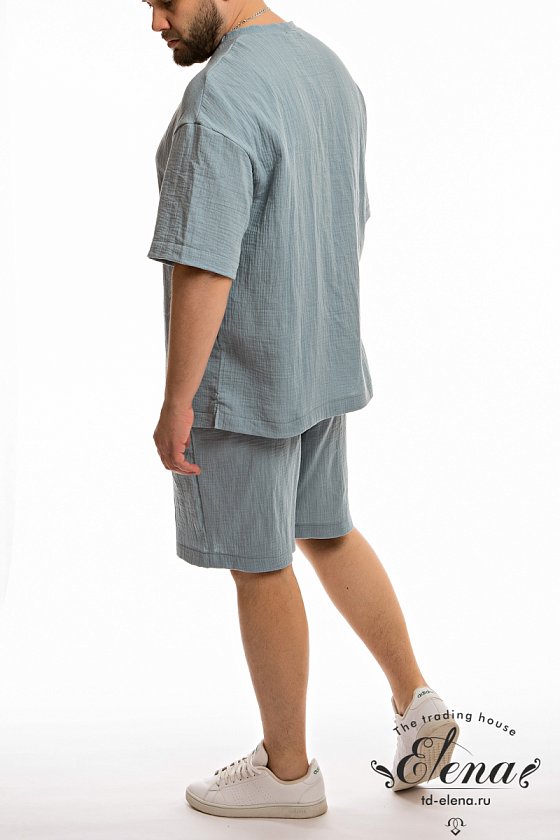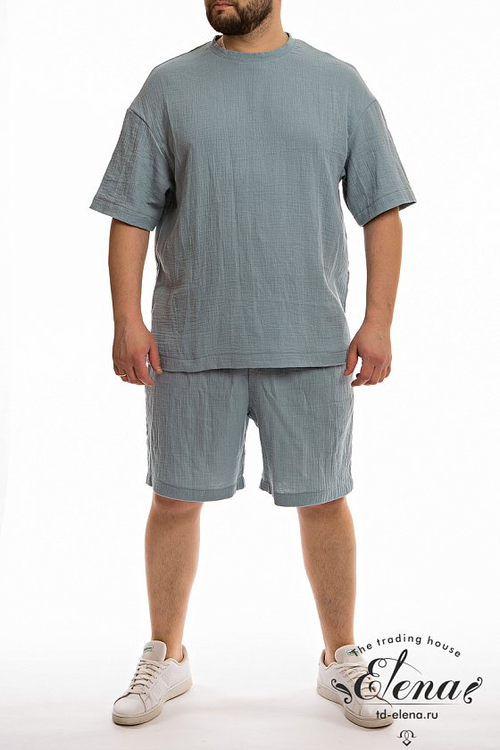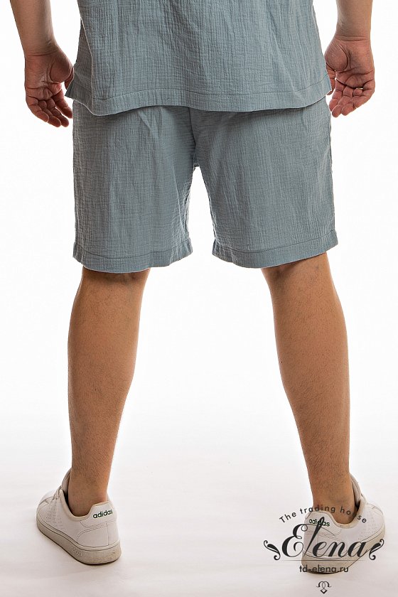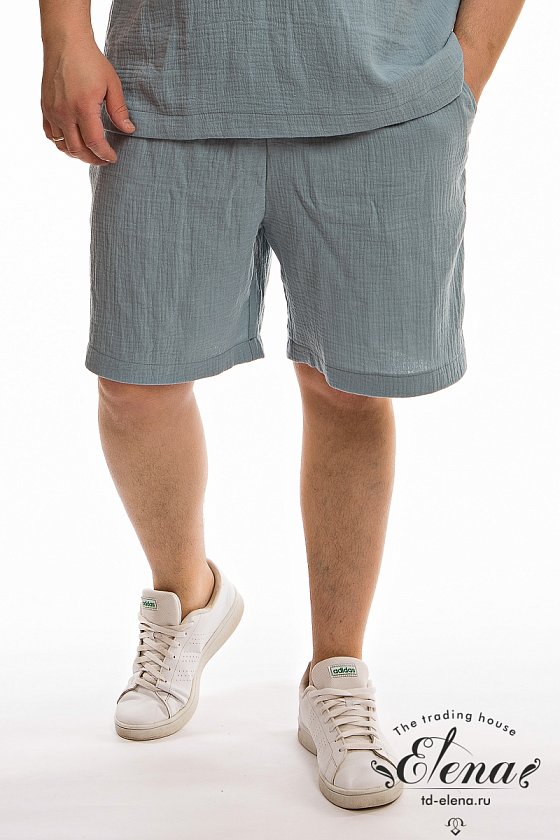 Шорты мужские выполнены из муслина. С боковыми карманами и притачным поясом на резине и шнуре.