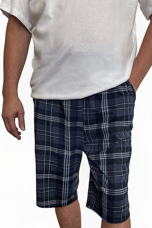 Шорты мужские (макси) из кулирки темно-синяя клетка
