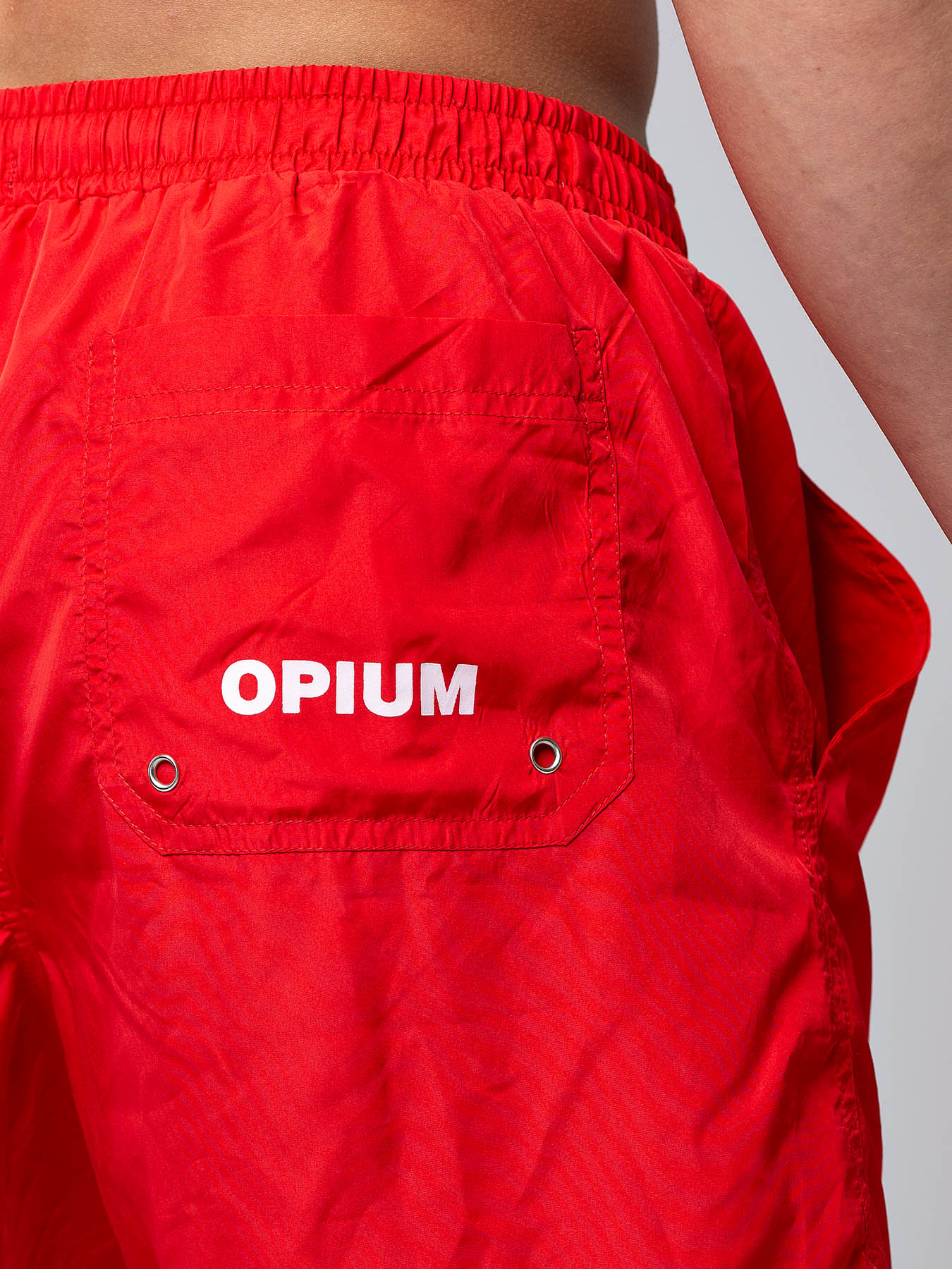 Мужские пляжные шорты из быстросохнущей ткани. Яркий красный цвет уместен и на отдыхе, и в спортзале. Шорты на резинке, дублированной контрастным белым шнуром с металлическими брендированными эглетами. Удобные боковые карманы и накладной карман сзади с белым логотипом Opium. Модель имеет дополнительную сетчатую вставку анатомической формы для Вашего удобства и выигрышной посадки. В этих великолепных шортах любой мужчина будет чувствовать себя комфортно и уверенно, независимо от того, где бы ни находился – в бассейне, спортзале или на пляже. Рекомендуем в качестве дополнения обратить внимание на майку R-141 и шлёпанцы AF-3.