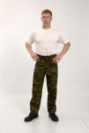 Брюки прямые на притачном поясе, на спинке собраны эластичной резинкой. На поясе имеются шлевки для ремня. Брюки оснащены двумя карманами по бокам и двумя фигурными карманами с клапанами на кнопках. Гульфик застегивается на пуговицы. Стрелки на передних половинках визуально "стройнят" силуэт. Изделие широко используется в качестве одежды для сотрудников охранных структур, а также в качестве одежды для туризма, рыбалки и других видов активного отдыха. Рекомендации по уходу: изделие прекрасно носится и не теряет своей привлекательности. Рекомендуемая температура для ручной и машинной стирки t до 40С° с применением мягких моющих средств. Изделие запрещено хлорировать и отбеливать!