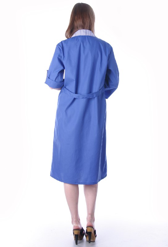 Гладкокрашеный халат на пуговицах с отделкой из смесовой ткани тиси.