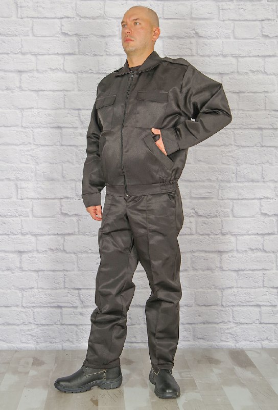 Костюм для охранных структур, работы и активного отдыха. Куртка с центральной застежкой на молнию, отложным воротником, два нагрудных кармана с клапаном на липучке и два боковых, на плечах - погоны на липучке. Брюки с карманами, прямого силуэта с притачным поясом с застежкой на пуговицах. Ткань грета.
