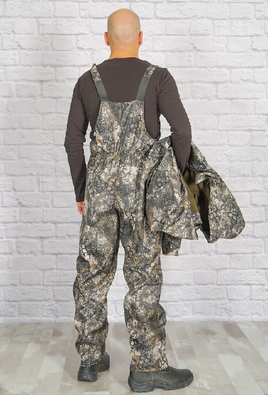 Полукомбинезон классического кроя на регулируемых бретелях, с центральной застежкой-молнией. Два накладных боковых кармана. По линии талии стянут резинкой, что обеспечивает дополнительную защиту от холода и ветра.