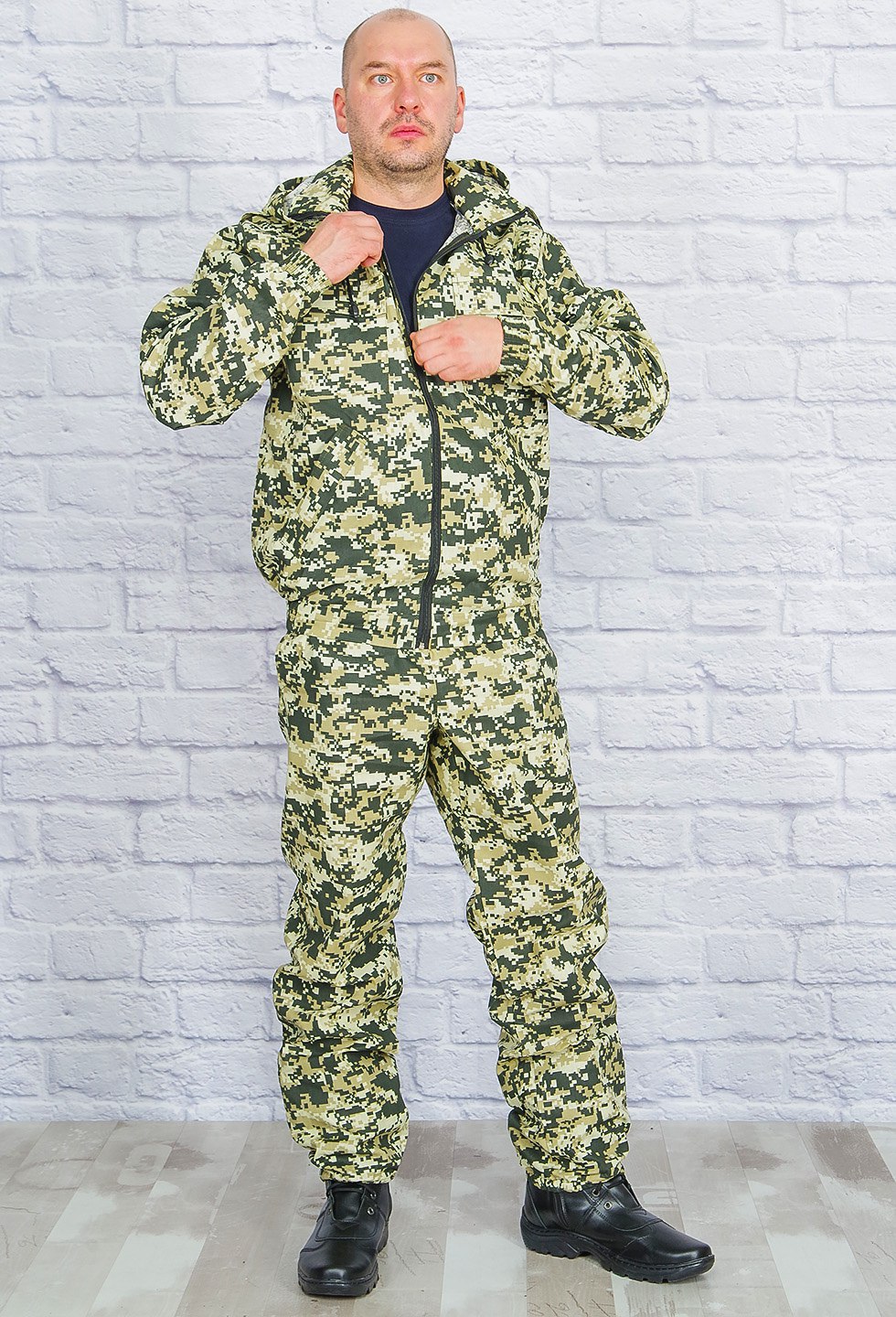Удобный, облегчённый летний костюм из сорочечной ткани (бязь). Куртка укороченная, низ на манжете и резинка сзади. Центральная застежка на молнии, два нижних боковых кармана и два верхних удобных накладных с клапанам на липучке, рукав втачной, на манжете с резинкой, на плечах погоны на липучке. Брюки имеют 2 внутренних боковых кармана, пояс на резинке - без гульфика, низ брюк на резинке. Костюм упакован в сумочку.
