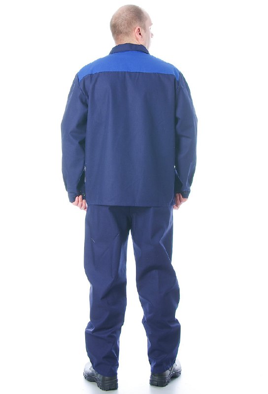 Костюм рабочий из саржи плотностью 240 г/м2 состоит из куртки и брюк.