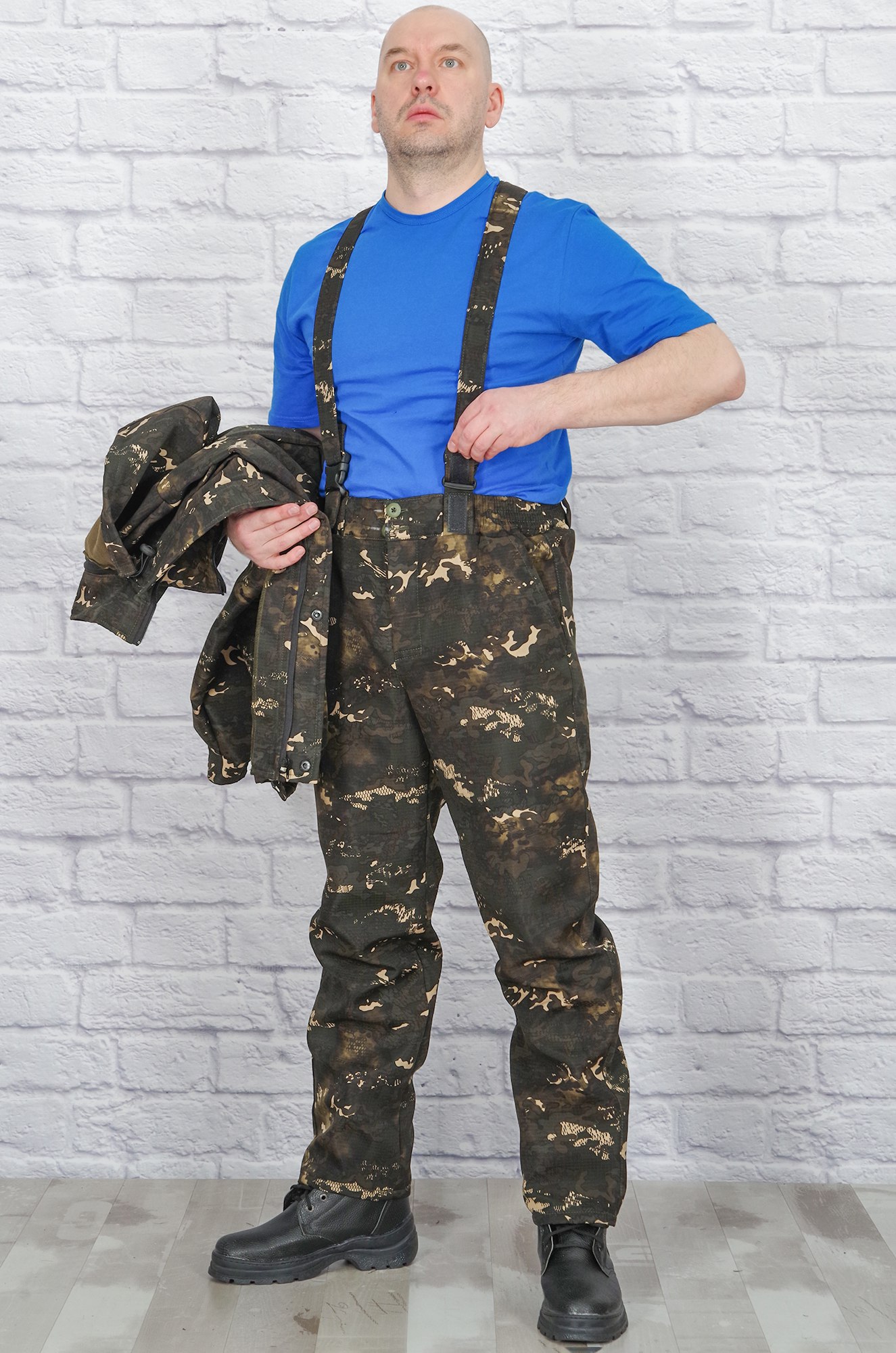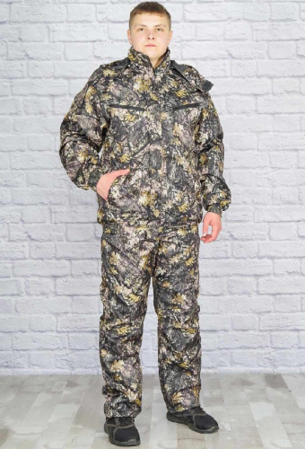 Удобный демисезонный костюм для любителей активного отдыха, охоты и рыбалки из ткани рипфлис. Рипфлис - это плотное, практичное в носке синтетическое полотно рип-стоп, дублированное флисом с изнанки. Преимущество материала – хорошая теплоизоляция, защита от ветра, влаги и от температурных колебаний. Благодаря флису внутри - ткань приятная, не шуршит. Куртка прямого кроя, на молнии и с ветрозащитной планкой на кнопках, с отстёгивающимся капюшоном. Удобные накладные нагрудные и нижние карманы на молнии, рукава снизу на резинке. Полукомбинезон прямого кроя, грудная часть на молнии и при необходимости легко отстёгивается. При этом остаются брюки с гульфиком на молнии, пояс на широкой резинке, по бокам - карманы.