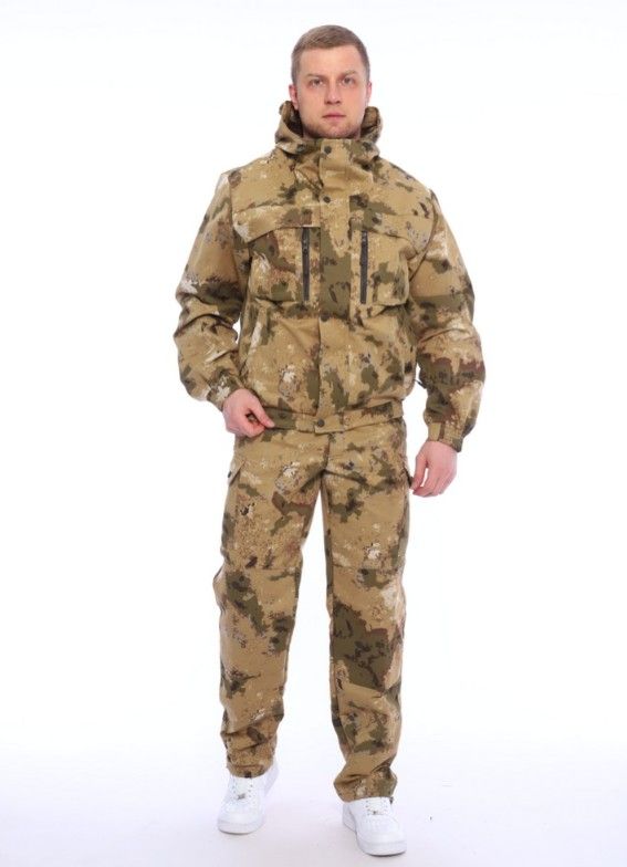 Ткань: твил; Состав: 65% хлопок, 35% вискоза; Сезонность: лето, всесезон; Рукав: длинный рукав; Стиль: милитари, рабочий; Праздники: 23 февраля; Застежка: кнопки, молния; Карман: с карманами; Тип изделия: костюмы с брюками; Цвет: бежевыйзеленый