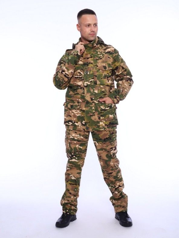 Ткань: твил; Состав: 65% хлопок, 35% вискоза; Сезонность: лето, всесезон; Рукав: длинный рукав; Стиль: милитари, рабочий; Праздники: 23 февраля; Застежка: пуговицы, молния; Карман: с карманами; Производство: г. Иваново; Тип изделия: костюмы с брюками; Цвет: зеленыйкоричневый