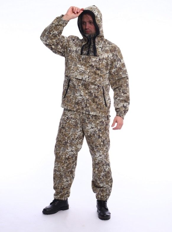 - капюшон сложной конструкции, полностью исключающей проникновение насекомых под одежду;