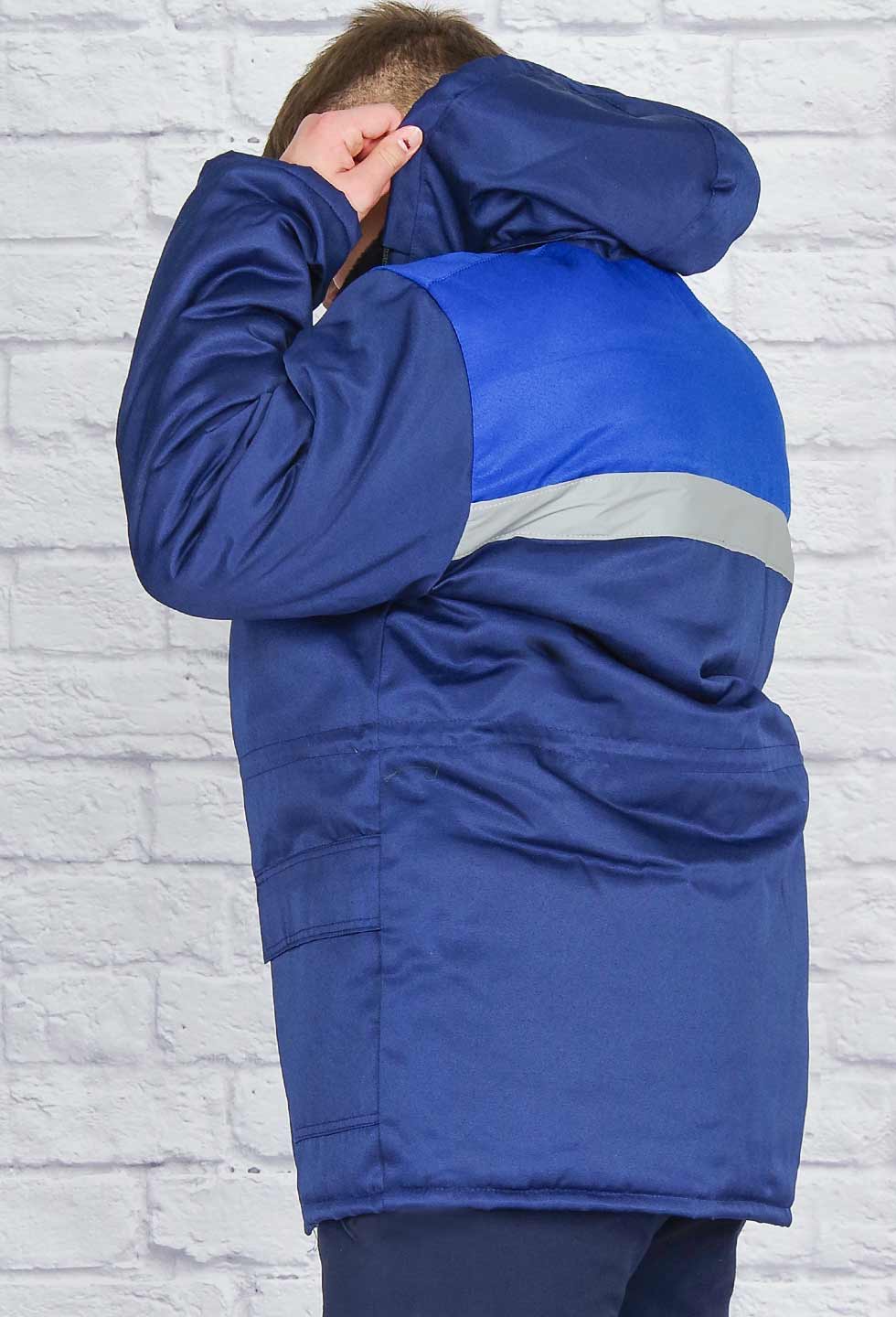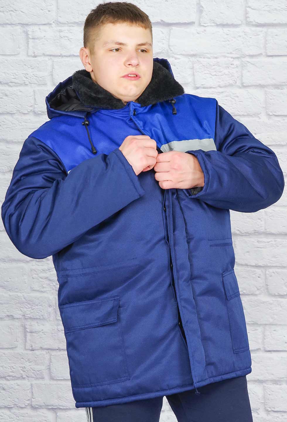 Куртка из смесовой ткани грета с меховым воротником и капюшоном и светоотражающей полосой (СОП).