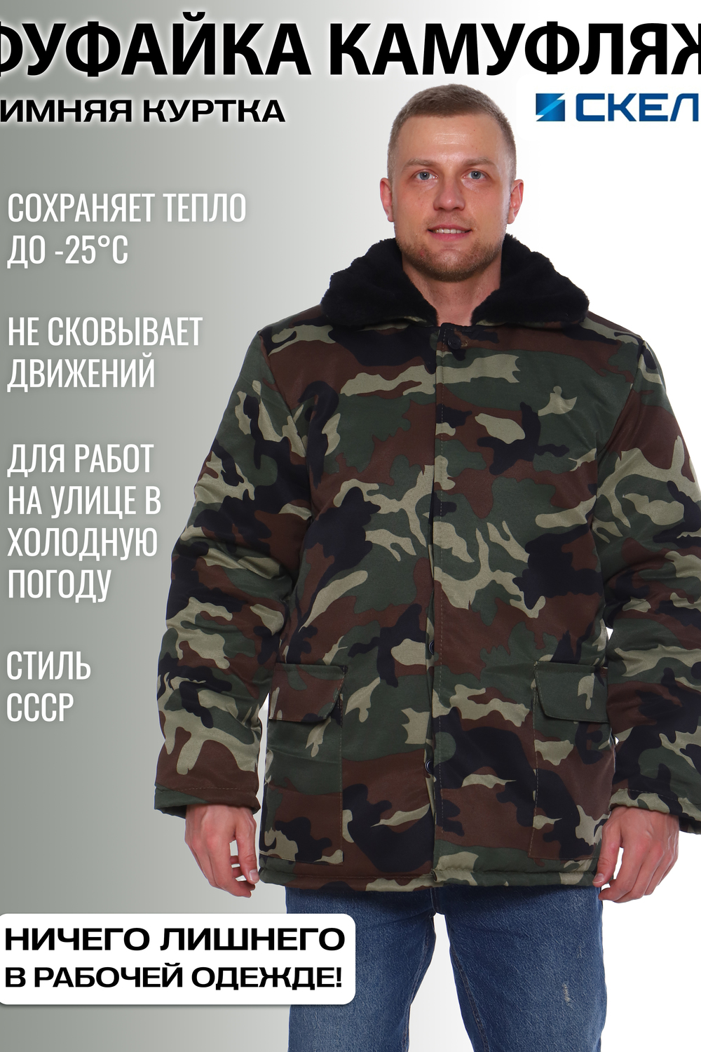 Высококачественная куртка рабочая мужская зимняя. Очень теплый и комфортный бушлат камуфляжного стильного цвета с теплым воротником из искусственного меха и длинным рукавом с внутренним трикотажным манжетом, предохраняющим от задувания ветра и сохраняющим тепло. Застегивается на скрытые пуговицы и петли, имеет два просторных накладных боковых кармана. Состав материала - хлопок 20%, полиэстер 80%. Куртка зимняя утепленная идеальна для уличных работ. Спецодежда мужская укроет вас от зимней стужи, метелей и морозов, прекрасно сидит, не сковывает движения. Зимняя куртка позволит спокойно и без лишнего дискомфорта заниматься делами до - 25С. Прекрасно подходит для охоты, рыбалки, похода, туризма. Рабочая одежда мужская зимняя очень практичная форма, униформа или спецодежда на разные случаи жизни, удобна для стройки. В наличии мужские зимние куртки больших размеров. Длина рукава измеряется от шва втачивания воротника до низа рукава. Цвет: хаки,камуфляж; Материал: грета;грета; Состав: 20% хлопок + 80% полиэстер.