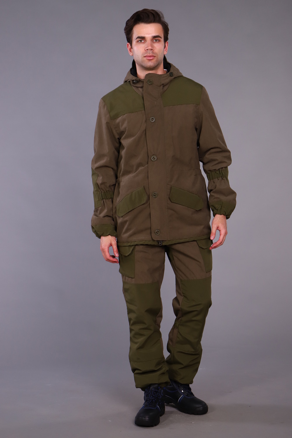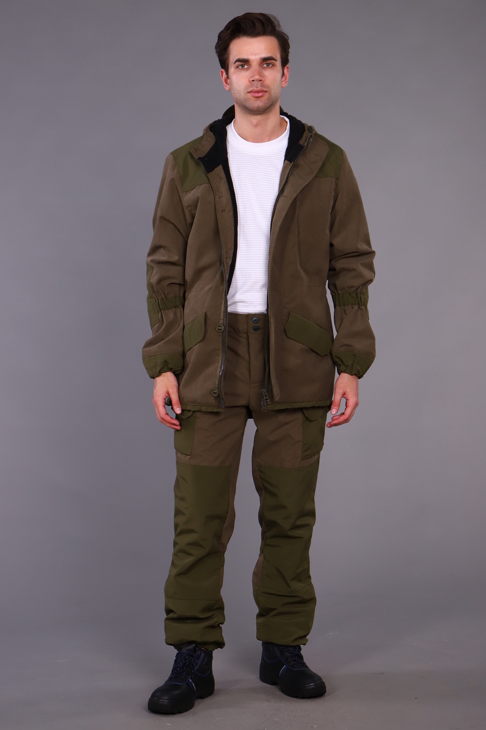 Костюм Горка демисезонный на флисе ткань мембранная. Мембраная ткань сочетает в себе такие свойства как воздухопроницаемость, паропроницаемость и защита от влаги. Костюм мембранный имеет малый вес, высокую прочность, прост в уходе, устойчив к механическим воздействиям, ткань отталкивает грязь. Куртка прямого силуэта, с подкладкой из флиса, с центральной бортовой застежкой на молнию, с ветрозащитным клапаном, удобными карманами, с втачным капюшоном. Брюки на флисе, с карманами, со съёмными бретелями. Для повышения износостойкости костюм Горка мембрана имеет накладки в местах, подверженных наибольшей нагрузке. Горка - отличный вариант спортивной одежды для активного отдыха рыбалки и охоты. Утепленный мужской костюм станет незаменимой вещью для охоты и рыбалки. Костюм военный прекрасно подойдет для полигона. Демисезонный костюм мужской подарит комфорт во время активного отдыха. Цвет: хаки; Материал: натуральный мех;натуральный мех; Состав: 100 % полиэстр.