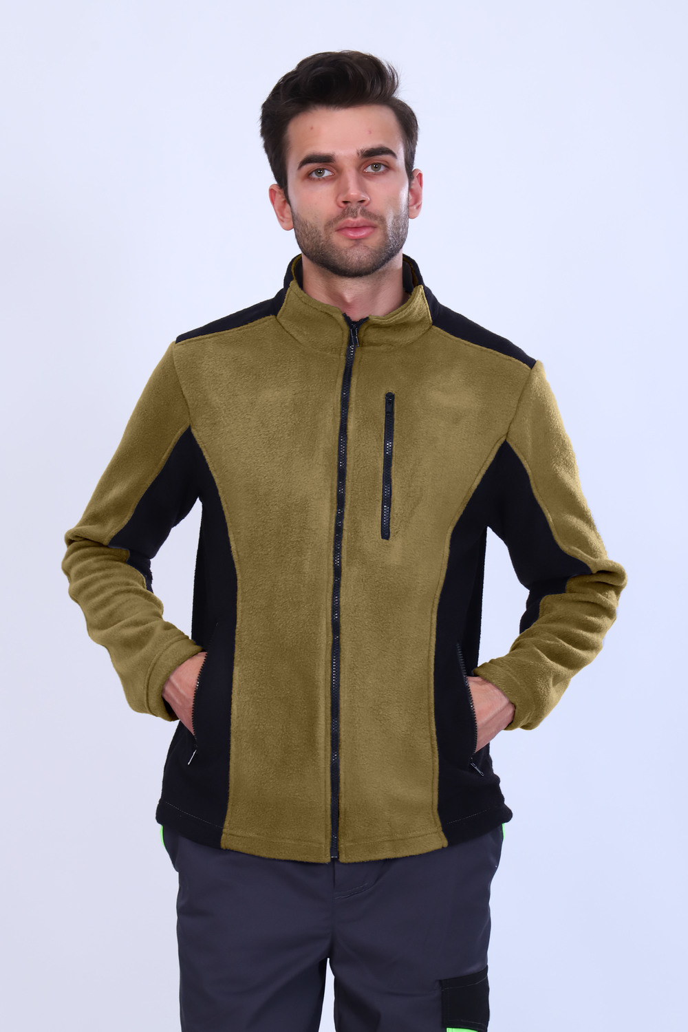 Толстовка на молнии флисовая прямого силуэта. Кофта флисовая мужская на молнии не оверсайз, остается трендом уже долгое время и является не заменимой частью современного гардероба. Толстовка рабочая выполнена из мягкой и приятной ткани, отталкивает воду, куртку можно носить на футболку или водолазку как бомбер или под верхнюю одежду. Карманы на молнии не дадут вам потерять ценные вещи на прогулке или занятие спортом, поэтому худи мужской удобен для повседневной носки. Толстовка теплая сидит по фигуре, не сковывает движения, ее будет комфортно вам использовать как домашнюю одежду весной, осенью или зимой. Также теплая демисезонная кофта станет отличным подарком папе, брату и любимому парню. Материал не скатывается и сохраняет форму после стирки. Станет прекрасным подарком на любой праздник. Цвет: хаки; Материал: флис;флис; Состав: 100% полиэстр.