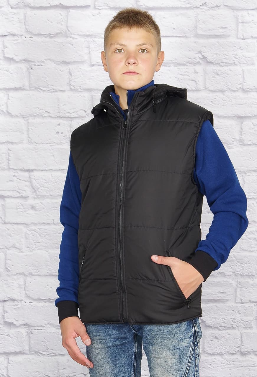 Жилет утеплённый, с капюшоном (чёрный)