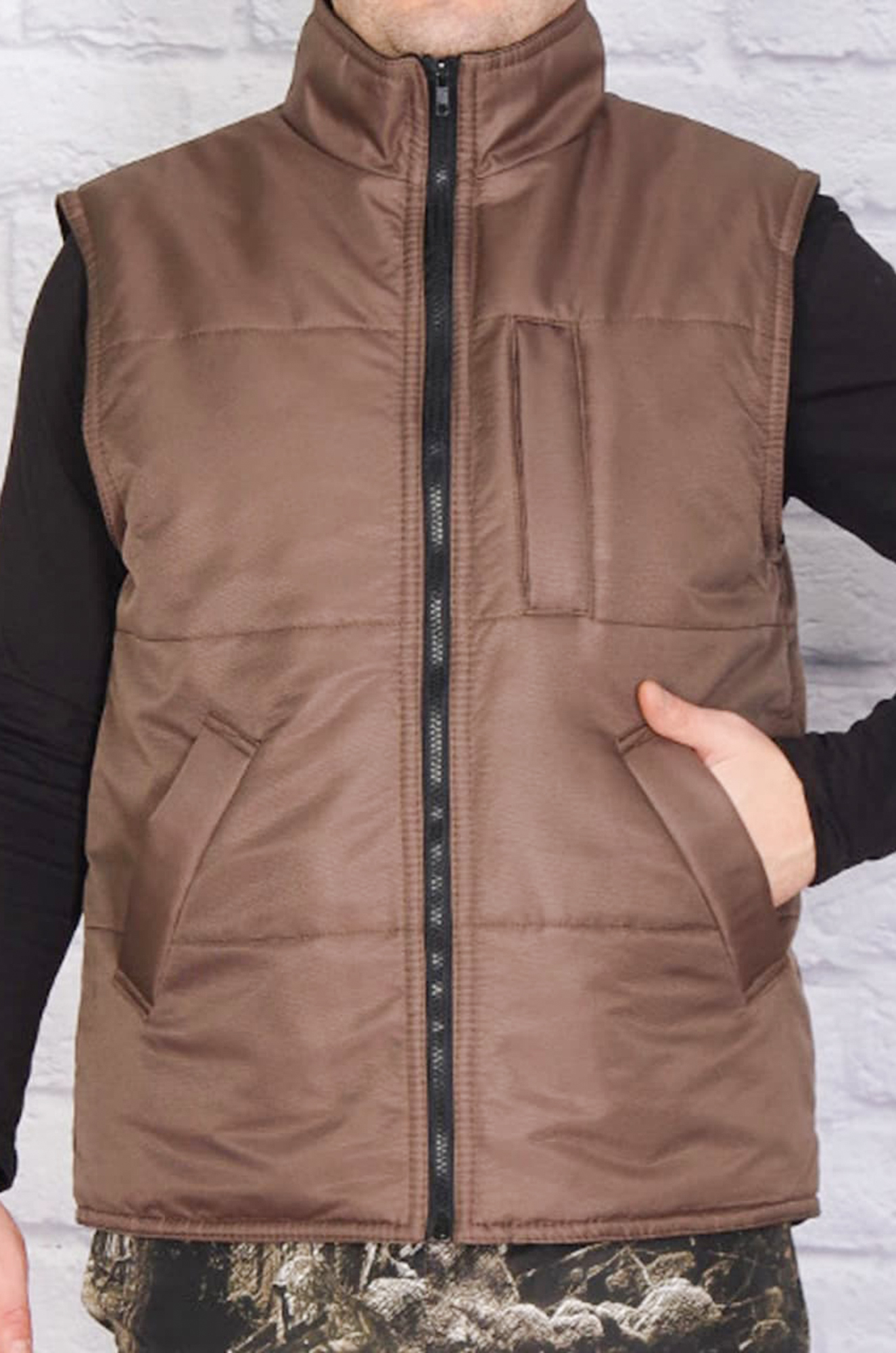 Утепленный жилет из современной мембранной ткани таслан с очень хорошей влаго- ветрозащитой. Модель прямая с углубленными проймами, центральная застежка - молния. Воротник - стойка. Имеется верхний прорезной карман на молнии и два нижних боковых кармана. Внимание! Цвета ткани в ассортименте! Подробнее уточняйте у менеджера при заказе!
