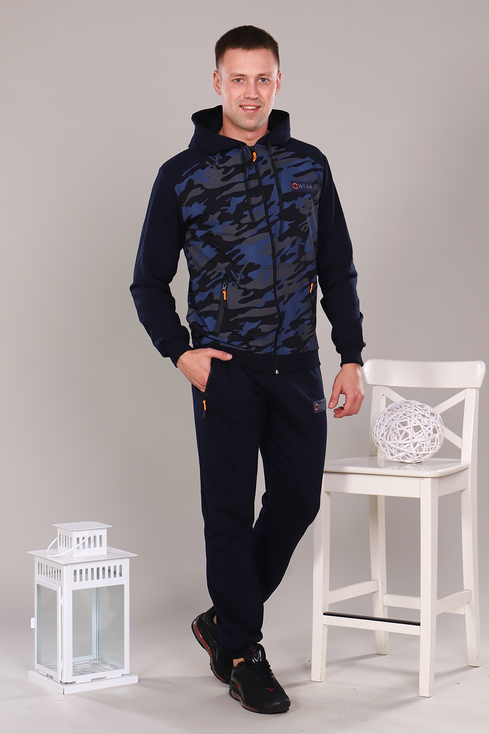 Стильный, удобный, легкий спортивный костюм, представлен в двух практичных расцветках, выполнен из футера 2-х нитки. Интересная модель с двойным капюшоном, толстовкой на молнии, низ на манжете, карманы на кофте и брюках на молнии. Модель может быть использована для прогулок, как домашний костюм, так и для спорта. Ткань отличного качества держит форму, не скатывается, не расползается. Камуфляжная расцветка всегда актуальна. Носите с удовольствием.