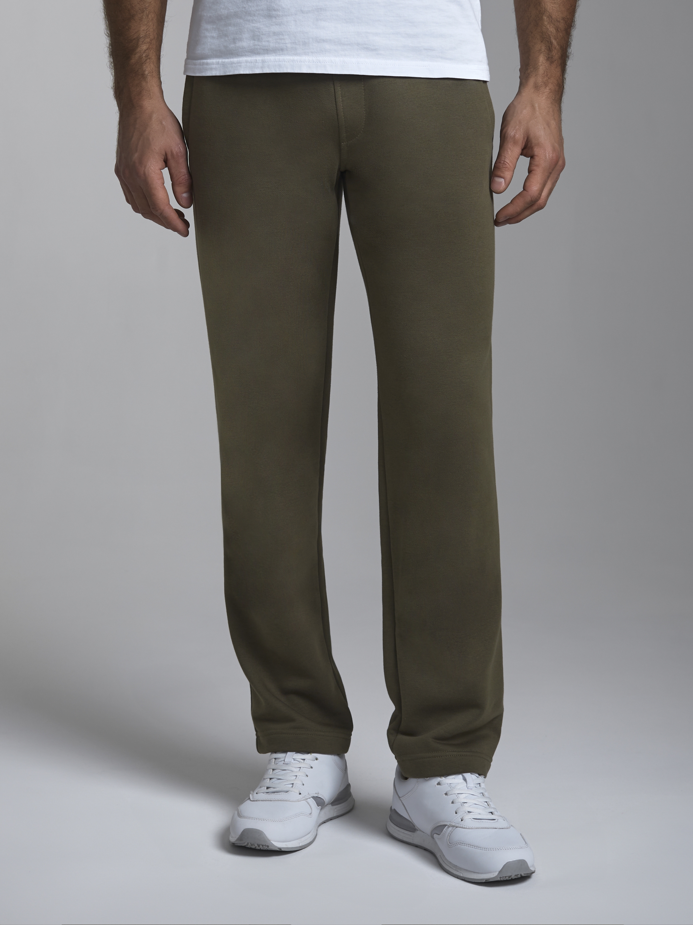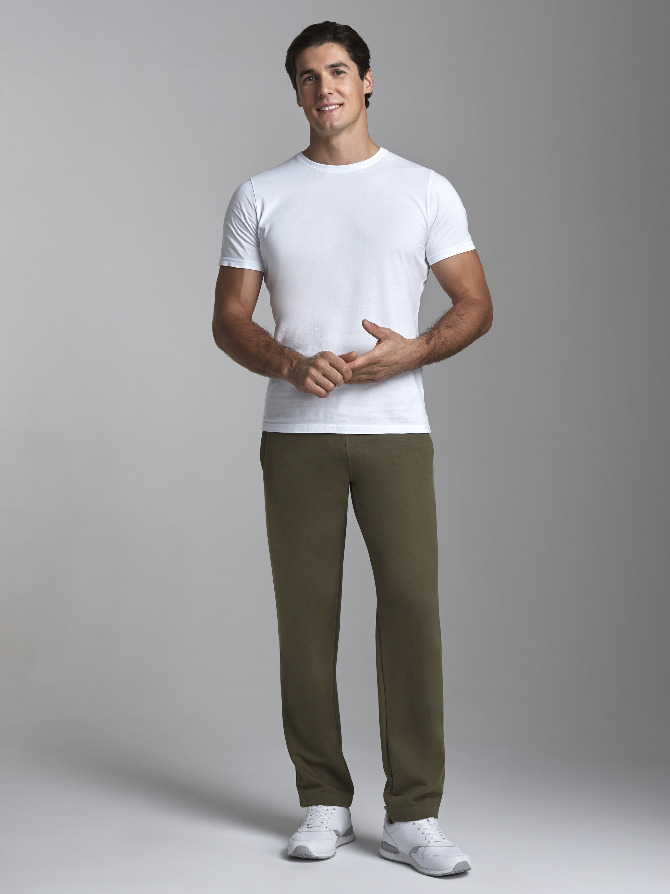 Брюки мужские из плотного хлопкового трикотажного полотна с петельной изнанкой. Брюки прямого силуэта с прорезными карманами, Эластичный пояс дополнительно регулируется шнуром. 80% хлопок, 20% полиэстер
