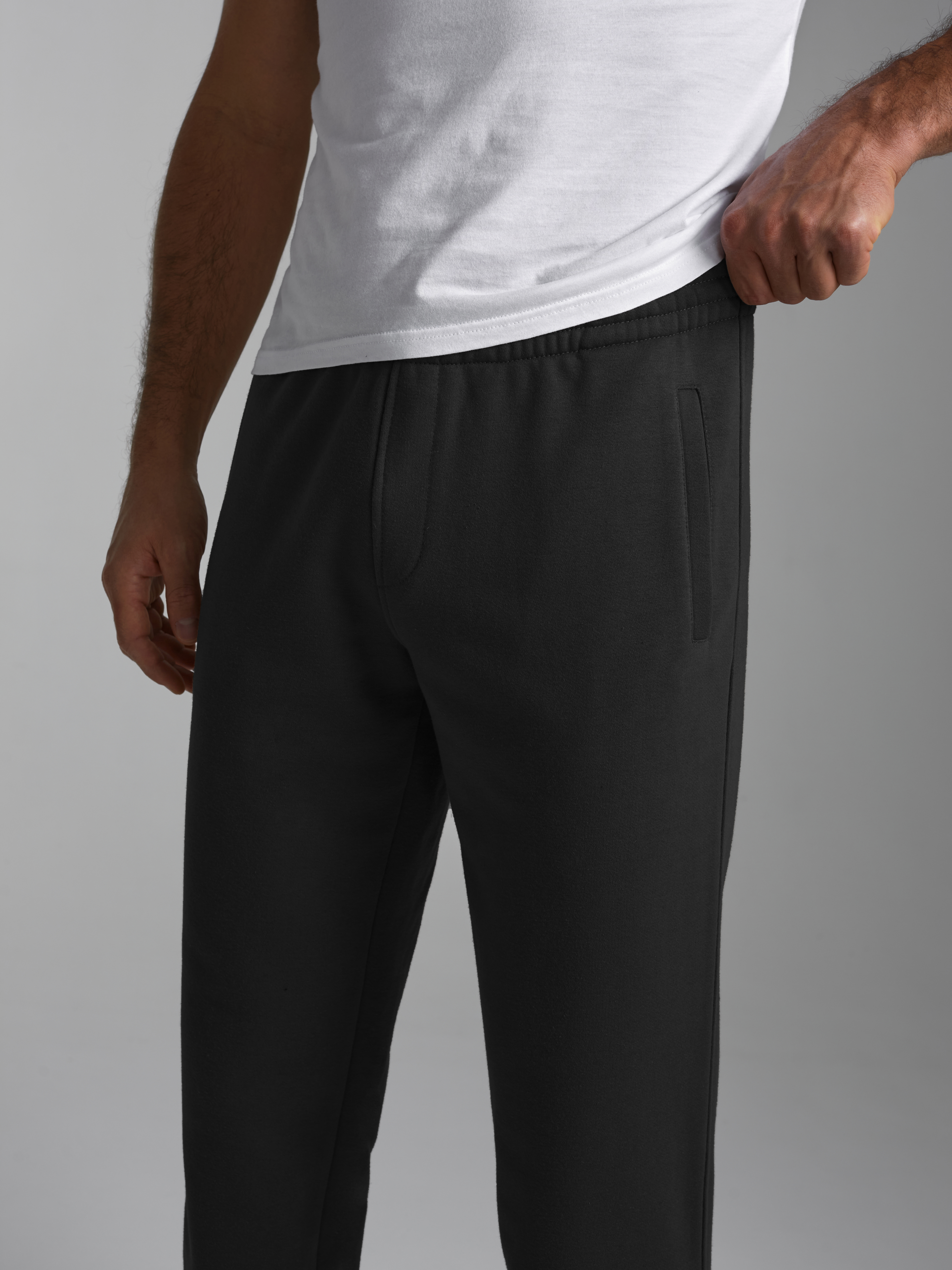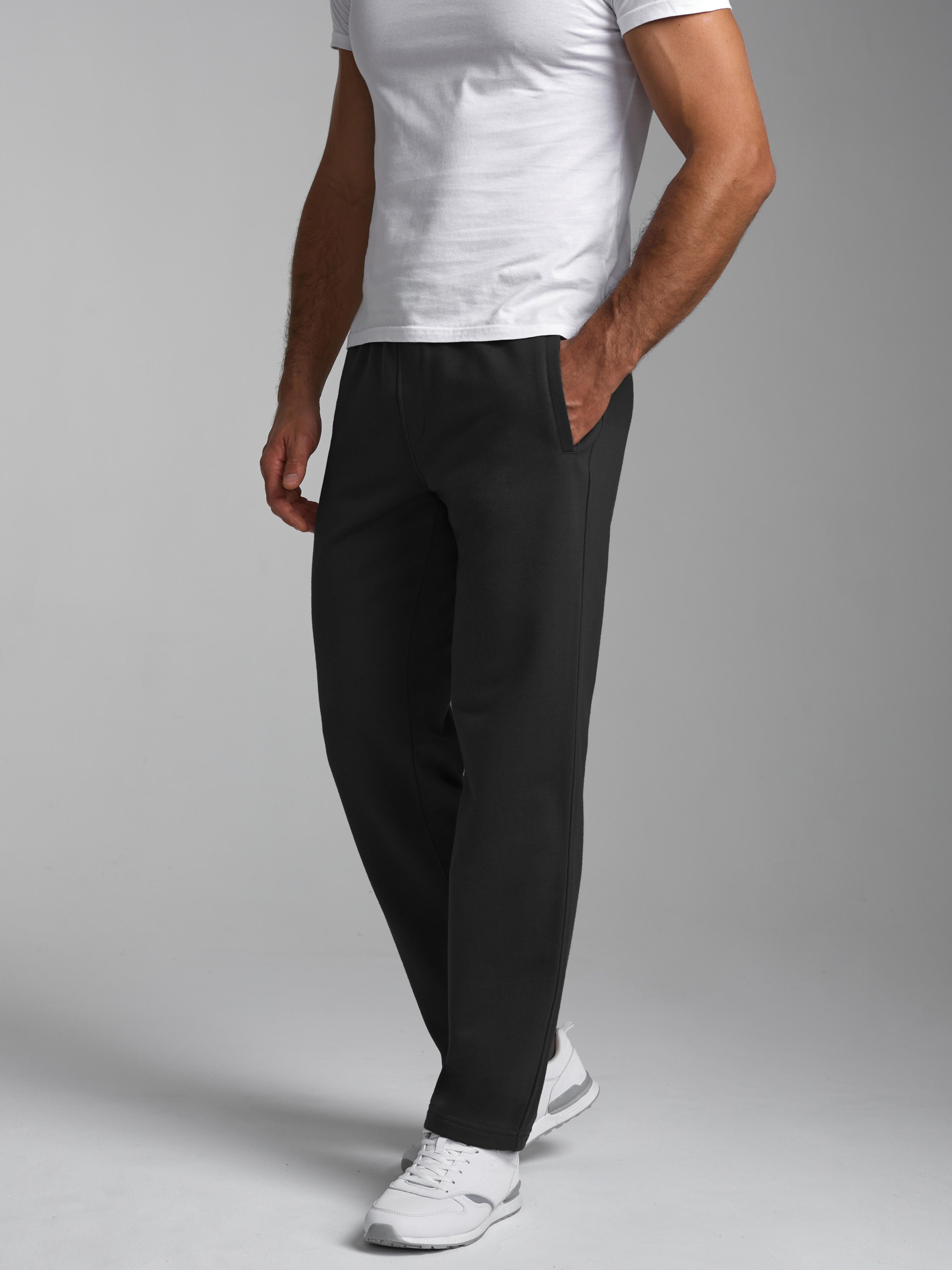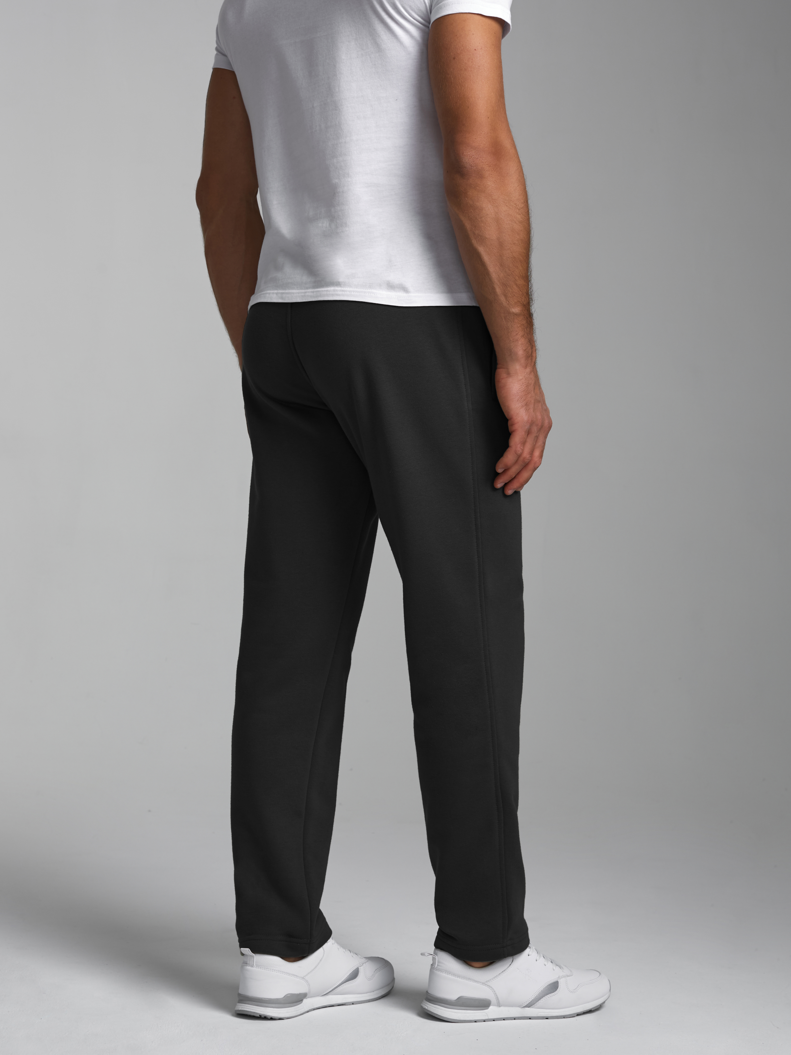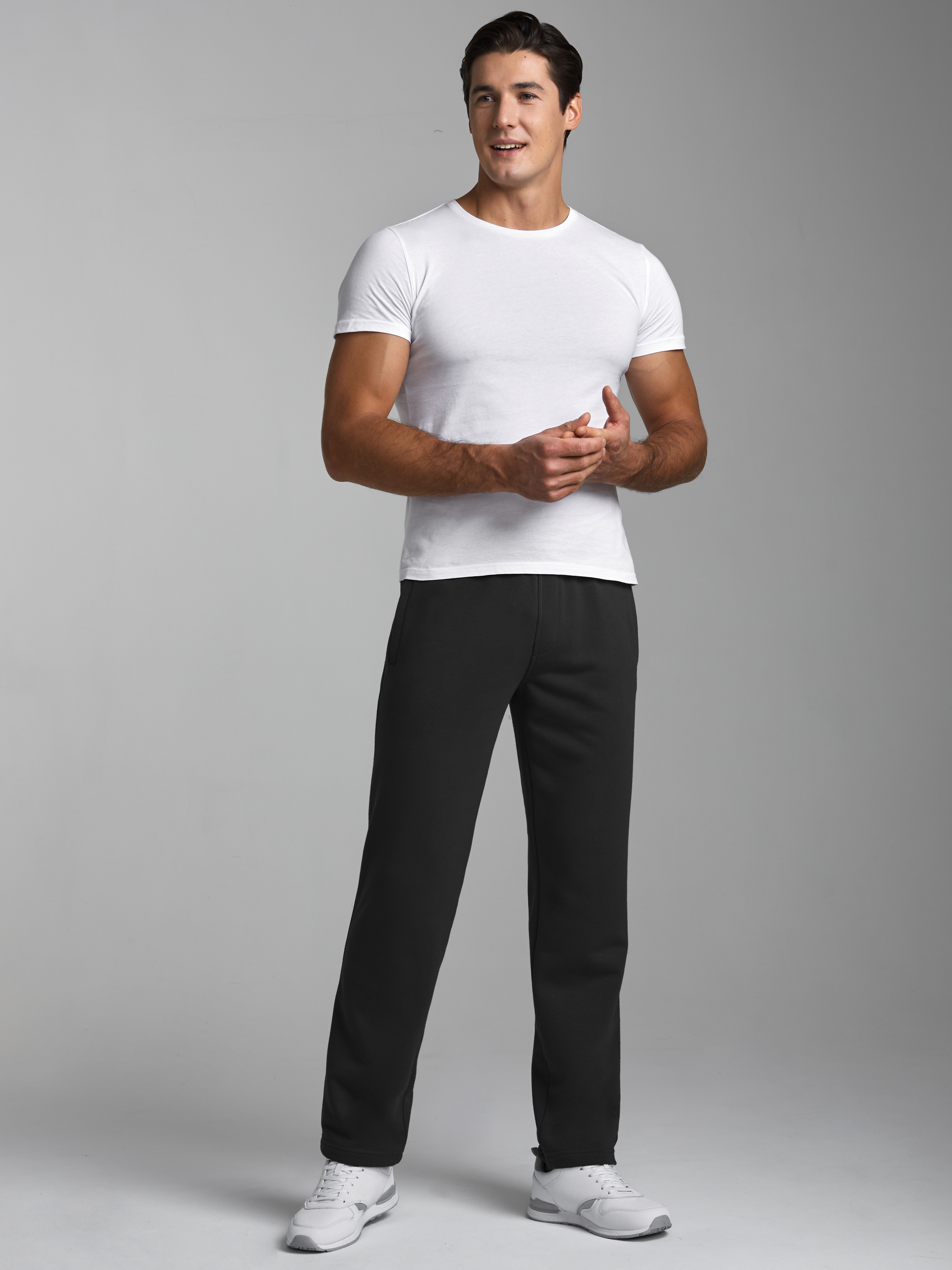 Брюки мужские из плотного хлопкового трикотажного полотна с петельной изнанкой. Брюки прямого силуэта с прорезными карманами, Эластичный пояс дополнительно регулируется шнуром. 80% хлопок, 20% полиэстер